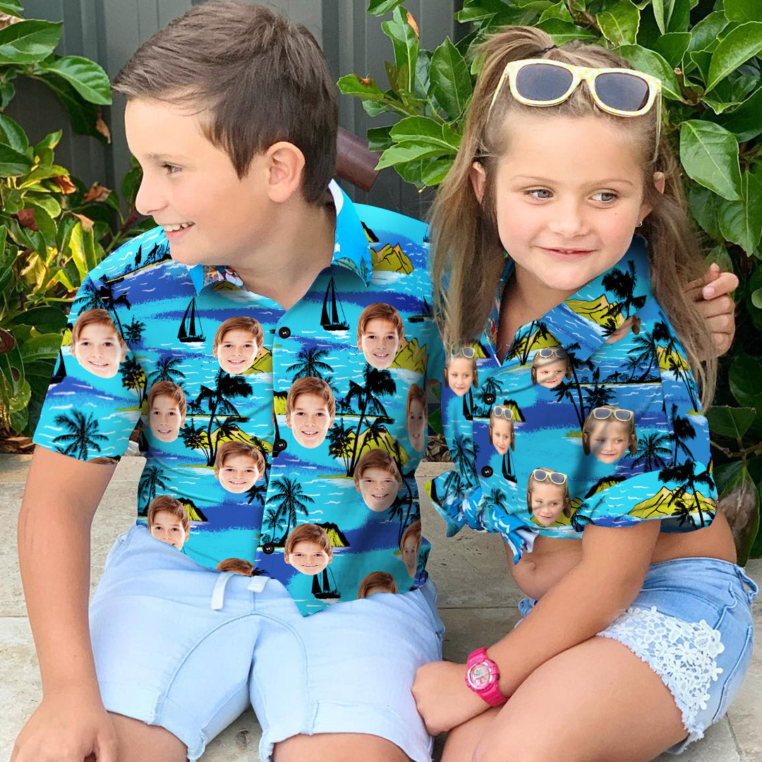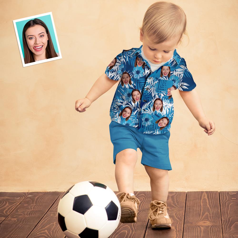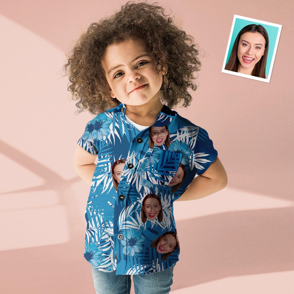 Léine Haváise Aghaidh Chustaim Kid's Ar fud Priontáil Gorm Léine Muinchille Gearr