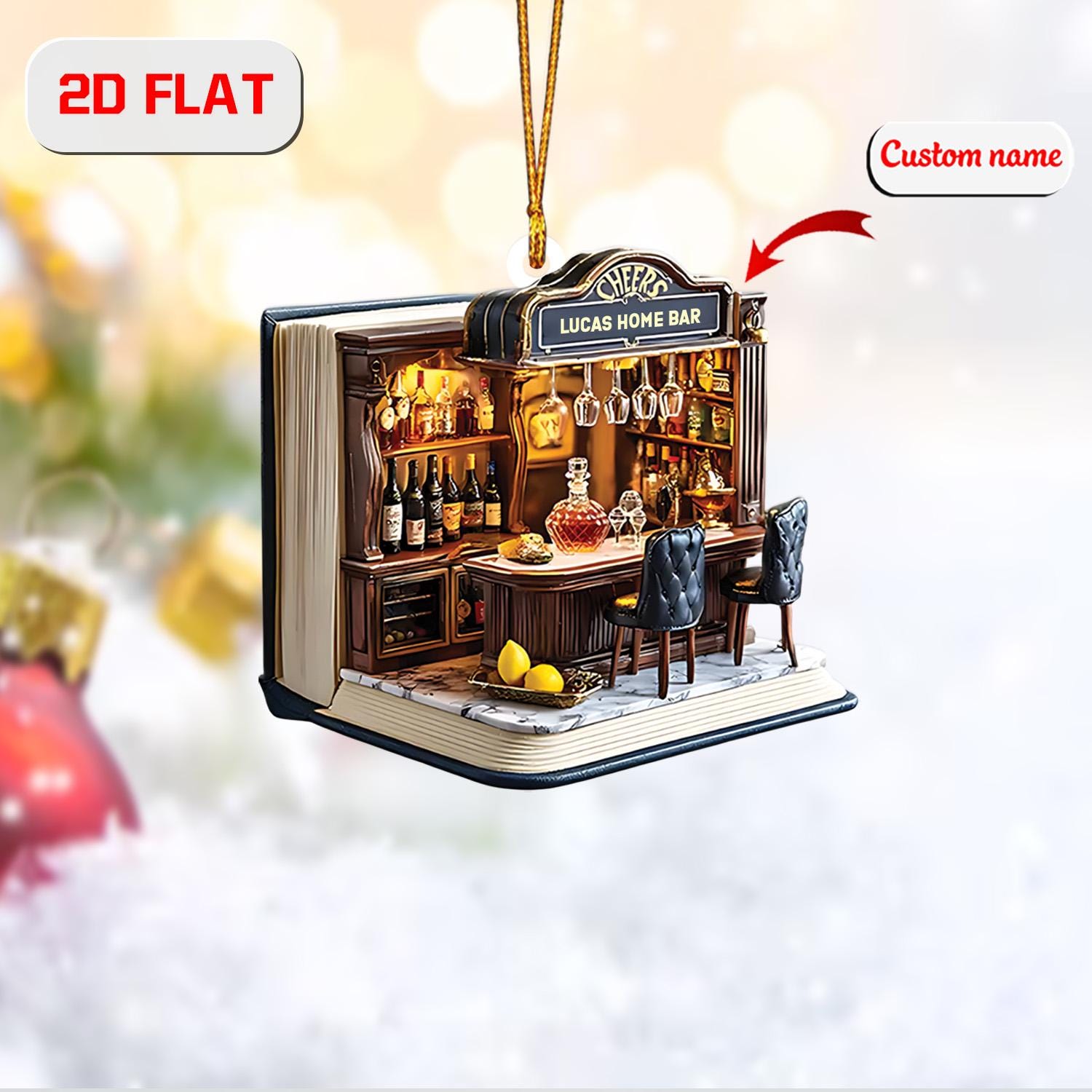 Custom Home Bar Ornament, Personalized Bartender Christmas Ornament, Bar Decoration Holiday Ornament, Unique Gift for Bar Owner,