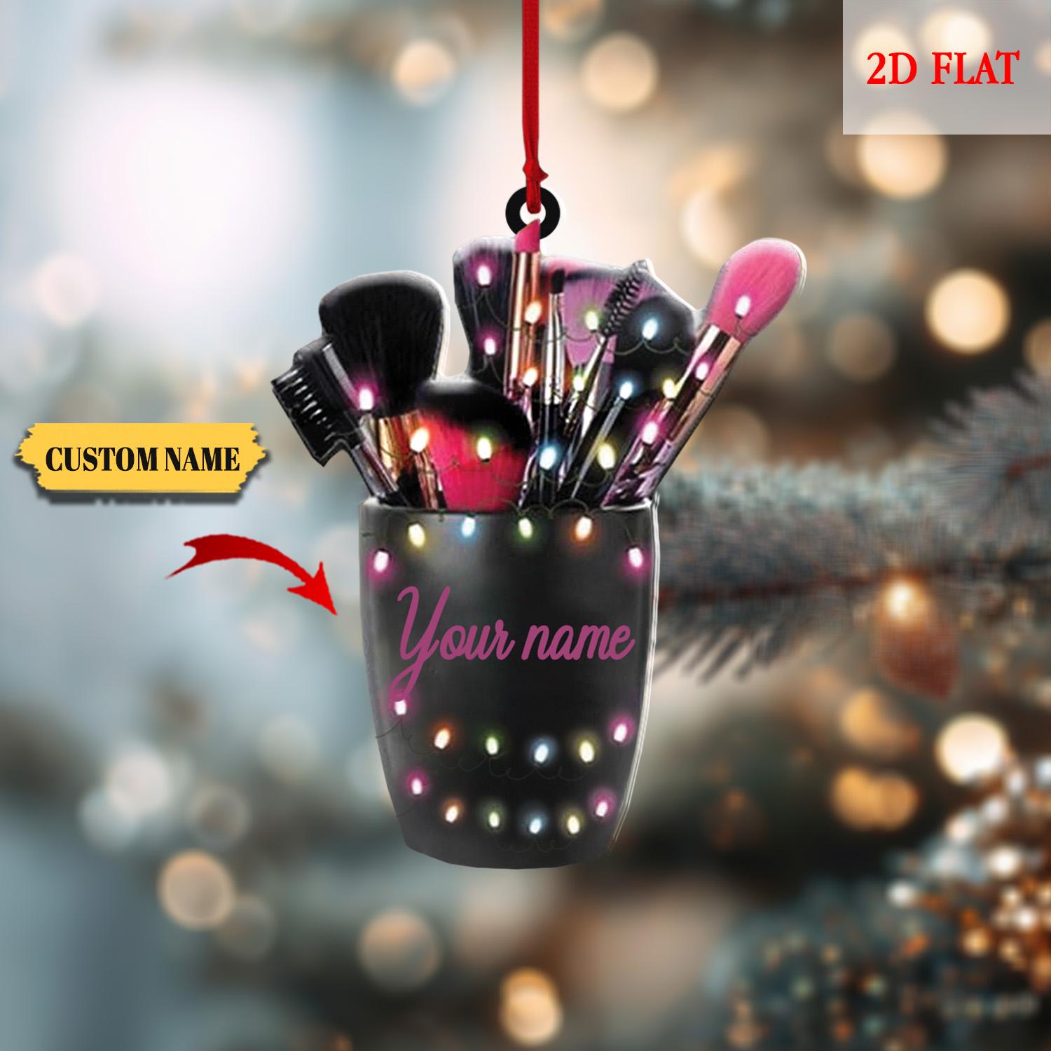 Custom Name Makeup 2D Flat Ornament, Christmas Ornament Keepsake, Teen Girl Christmas, Makeup Set Christmas Tree Decor, Makeup Gift