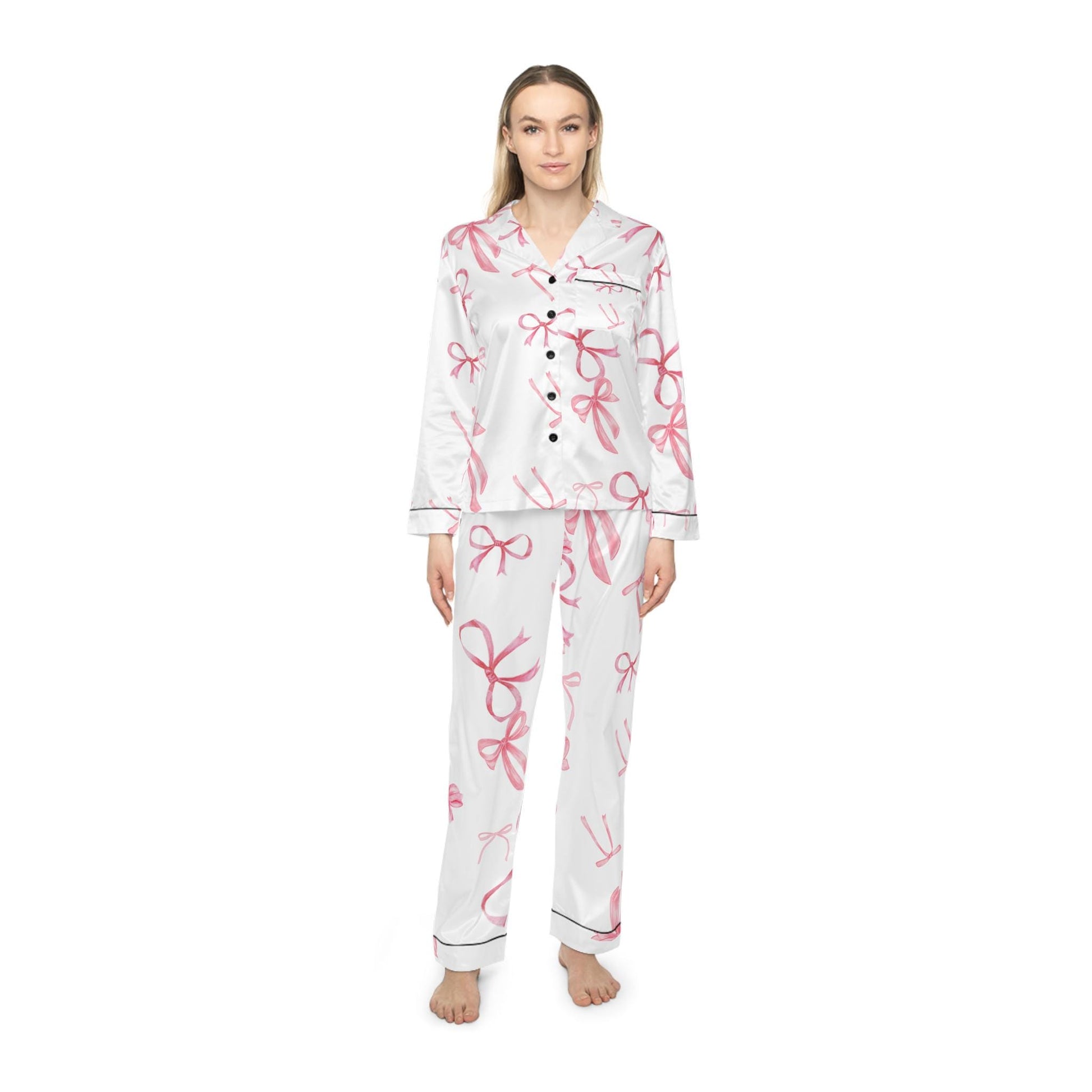 Custom pajamas set Chic bow Women's Satin Pajamas with Bow Design, Luxurious Sleepwear, Perfect for Gift Giving, Loungewear, Cozy Nights