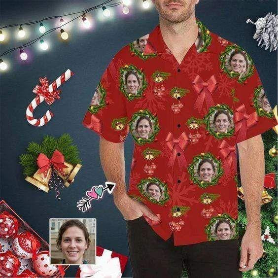 Grianghraf Saincheaptha Nollag Dearg Garland Bow Dearadh Stíl Vintage Léine Haváís, Bronntanais Léine Haváís, Bronntanas Nollag