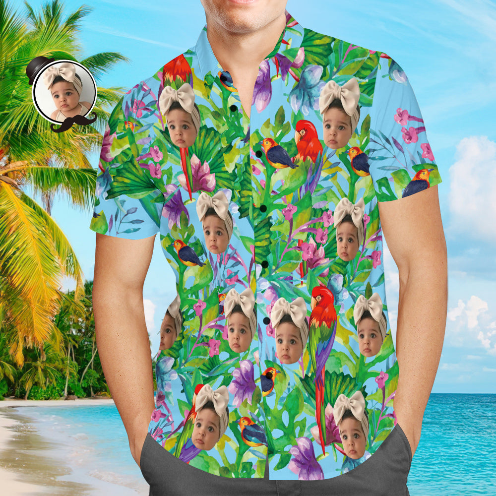 Léinte Trópaiceacha an Chustaim le Aghaidh Saincheaptha Léinte Haváís Parrot Léine Lá an Athar Bronntanas do Dhaid