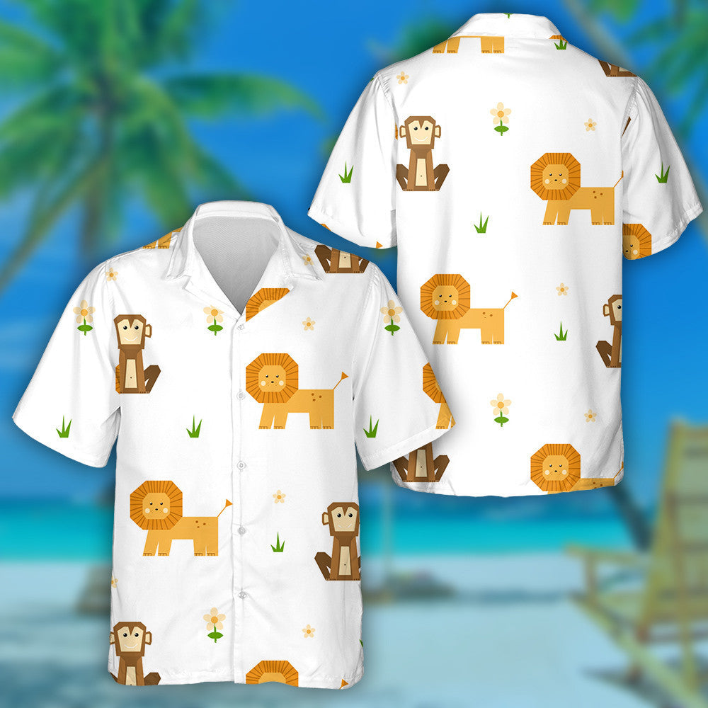Leon agus moncaí gleoite na hAfraice le Léine Haváíach Bláth agus Féir, Bronntanas Léine Haváí, Bronntanas Nollag