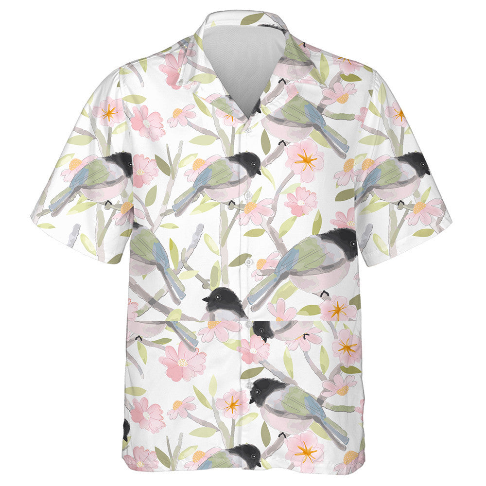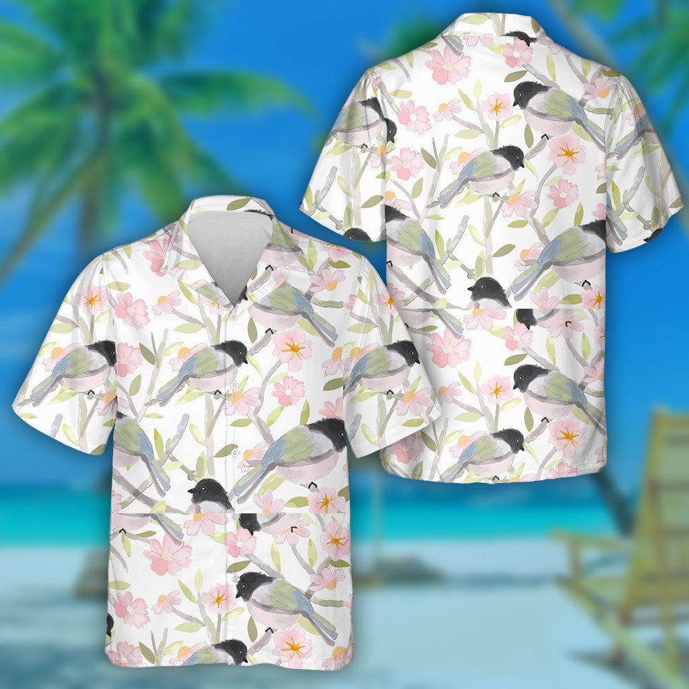 Éan gleoite Agus Bláthanna Bándearg le Léine Haváích Duilleog Glas, Bronntanas Léine Haváíais, Bronntanas Nollag
