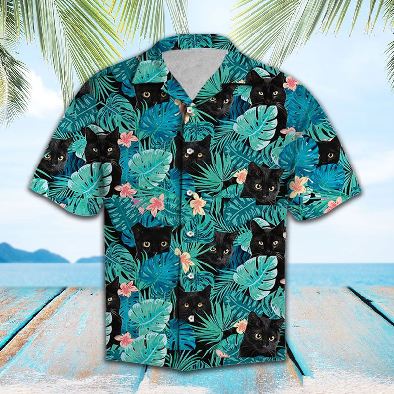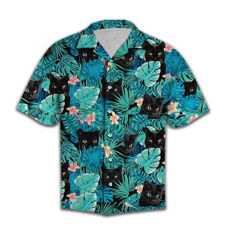 Cat Dubh gleoite Folaigh I bPatrún na nDuilleoga Trópaiceacha Léine Haváís, Bronntanas Léine Haváíais, Bronntanas Nollag