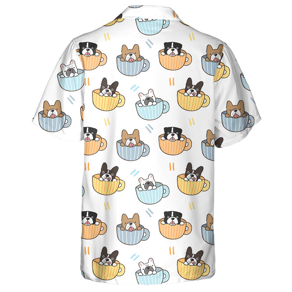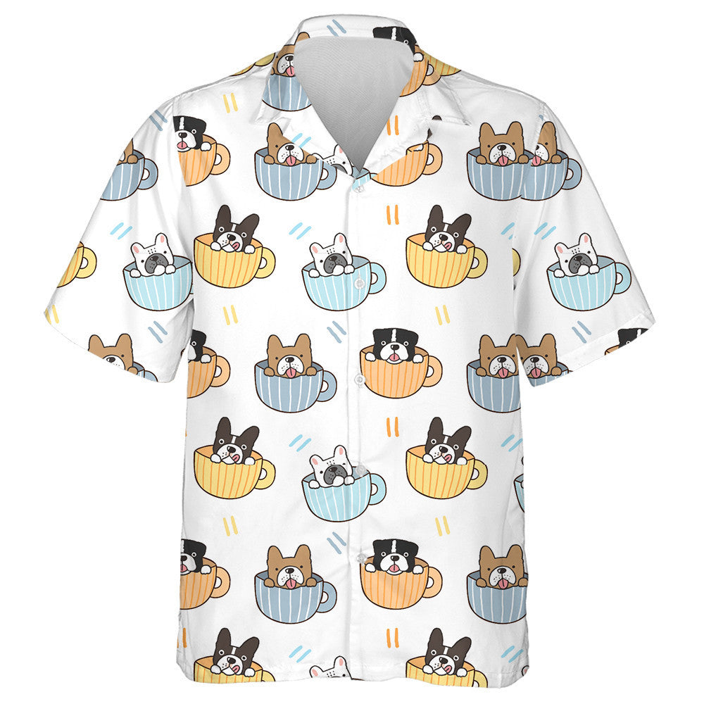 Bulldog gleoite I gCorn Caife Ar Chúlra Bán Léine Haváís, Bronntanas Léine Haváíais, Bronntanas Nollag