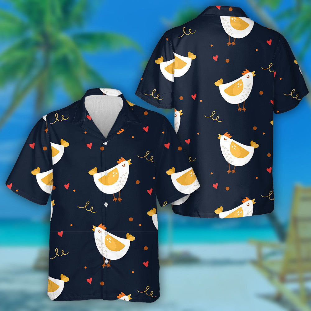 Sicín Gleoite Cartún Agus Croí Ar Chúlra Dubh Léine Haváís, Bronntanas Léine Haváíais, Bronntanas Nollag