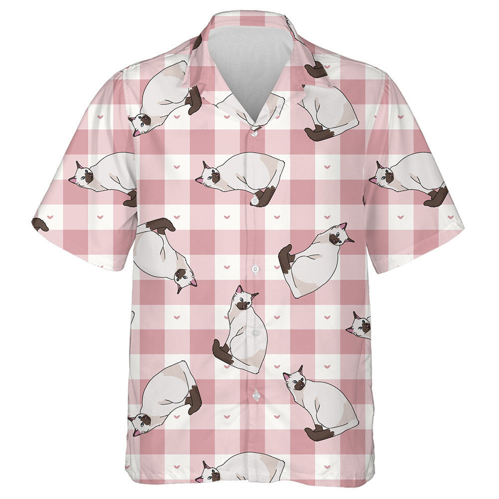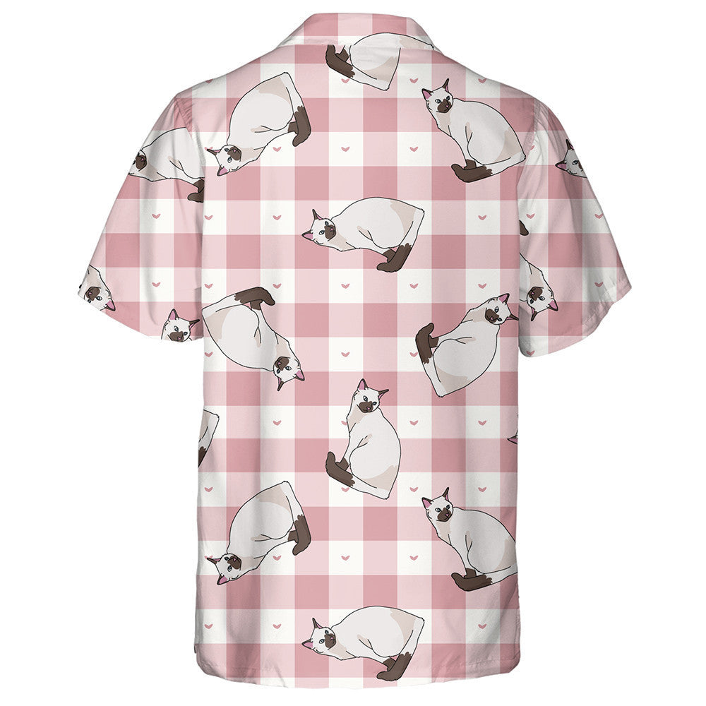 Cat Siamese Cartún gleoite Ar Léine Checkered Haváís, Bronntanas Léine Haváís, Bronntanas Nollag