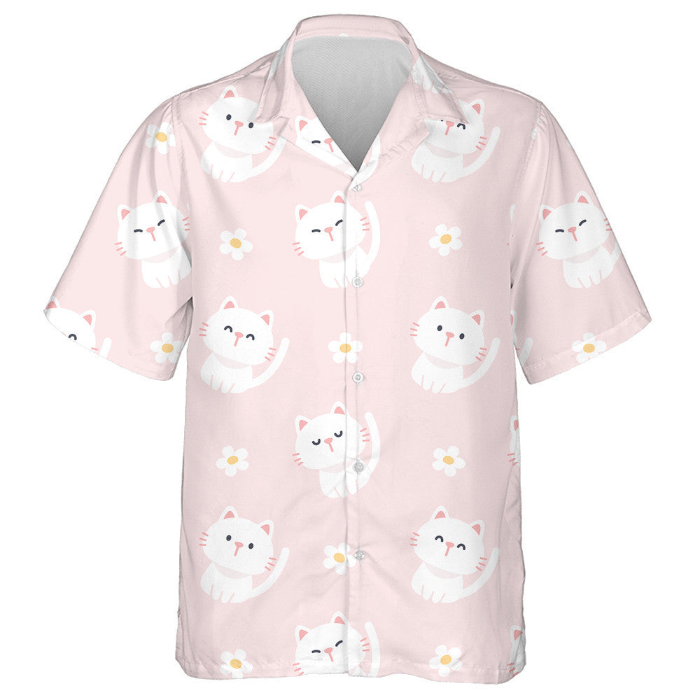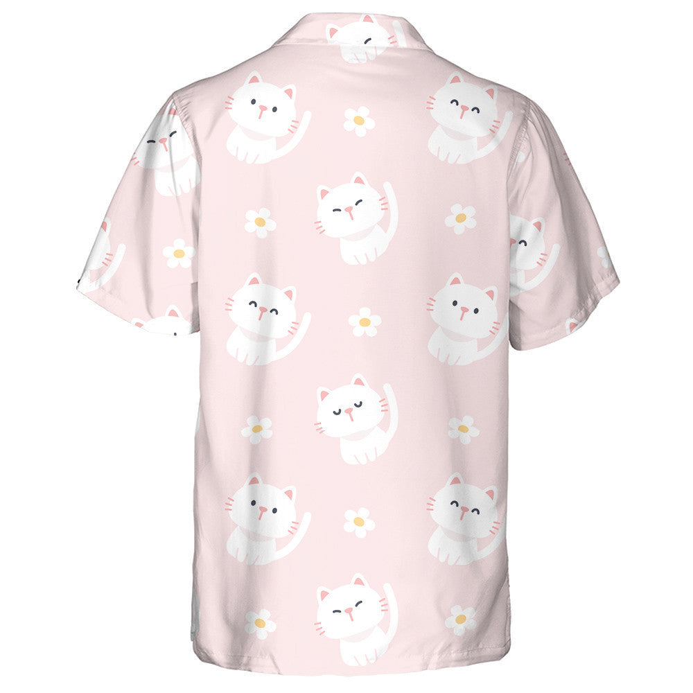 Cat gleoite Agus Bláthanna Bána i Stíl Chartúin Léine Haváís, Bronntanas Léine Haváís, Bronntanas Nollag