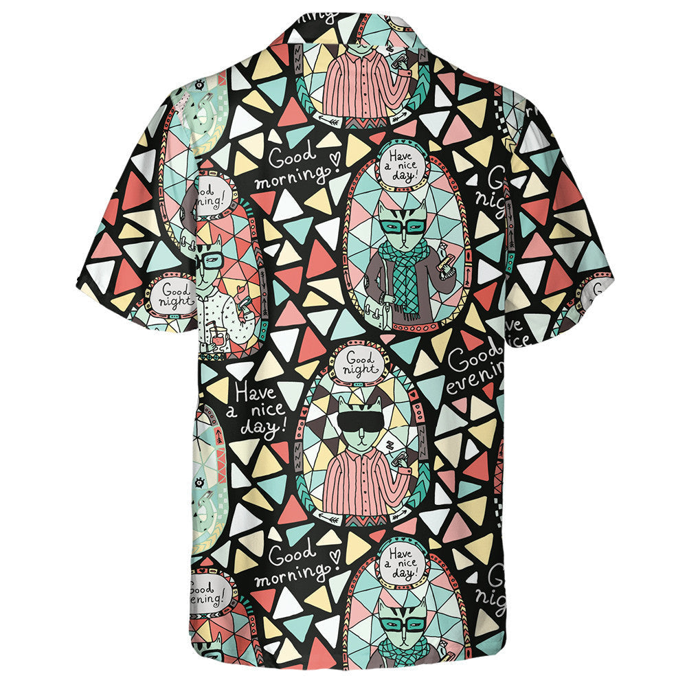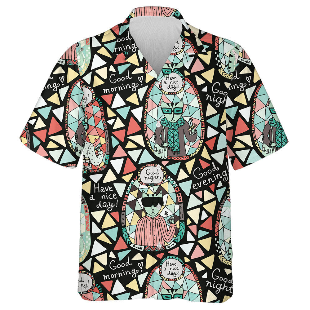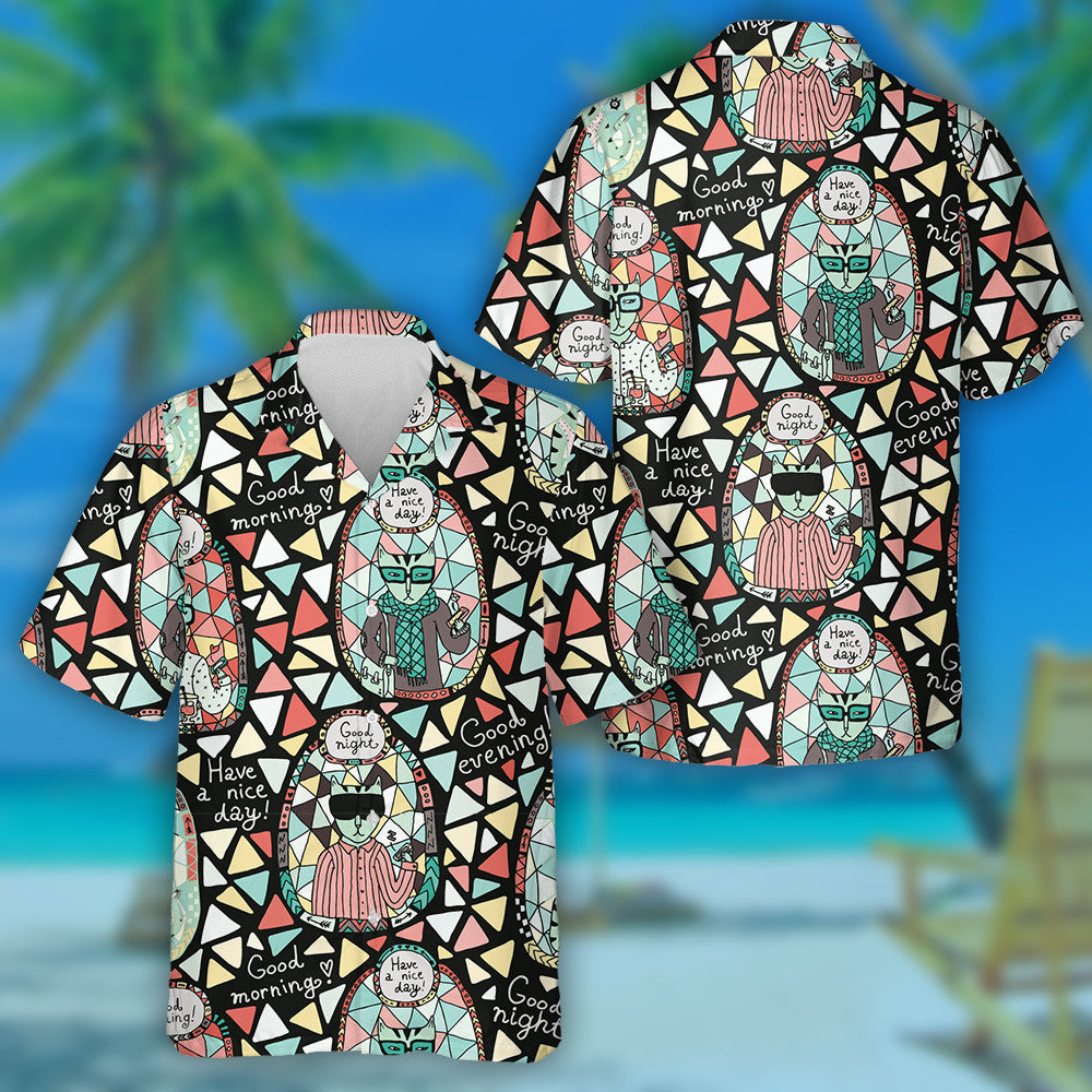 Cat gleoite i Stíl Hipster ar Léine Haváí Mósáic ildaite, Bronntanas Léine Haváís, Bronntanas Nollag