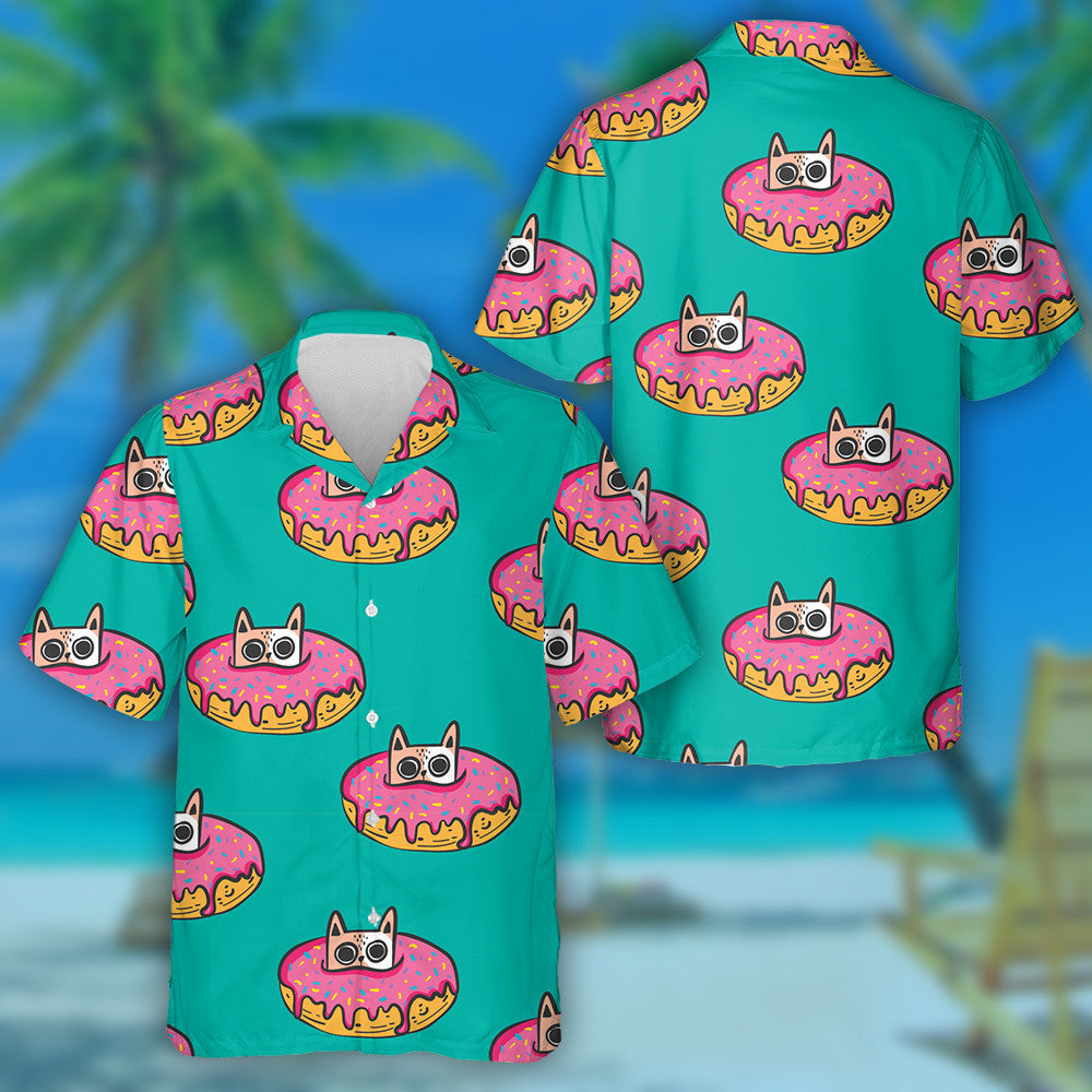 Cat gleoite Sa Donut Ar Léine Glas Haváís, Bronntanas Léine Haváí, Bronntanas Nollag