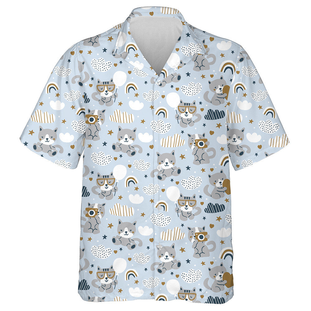 Cait gleoite Scamaill Agus Bogha Báistí ar Chúlra Gorm Léine Haváís, Bronntanas Léine Haváíais, Bronntanas Nollag