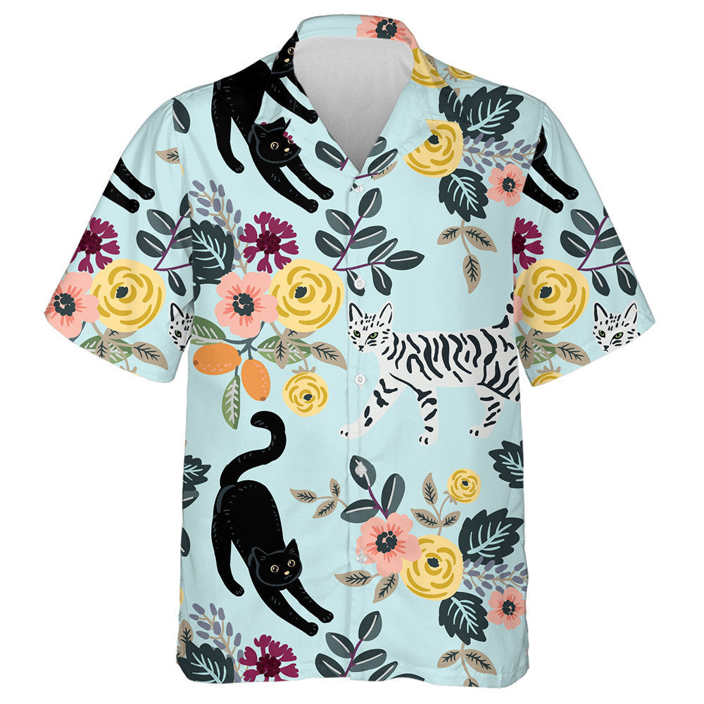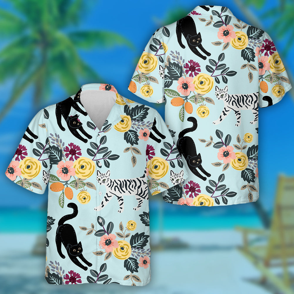 Cait gleoite Agus Bouquets Floral Ar an Léine Haváís Éadroma Gorm, Bronntanas Léine Haváís, Bronntanas Nollag