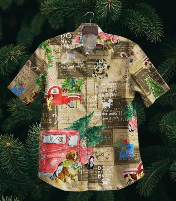 Madra gleoite Agus Crann Péine Dearadh Stíl Vintage Léine Haváís, Bronntanas Léine Haváís, Bronntanas Nollag