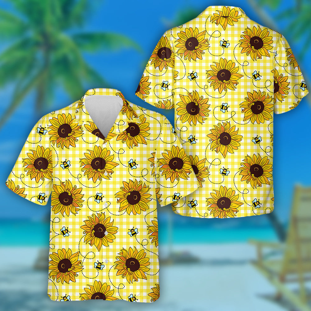 Beacha Eitilte gleoite Agus Lusanna Gréine ar Chúlra Buí Seiceáilte Léine Haváí, Bronntanas Léine Haváíais, Bronntanas Nollag