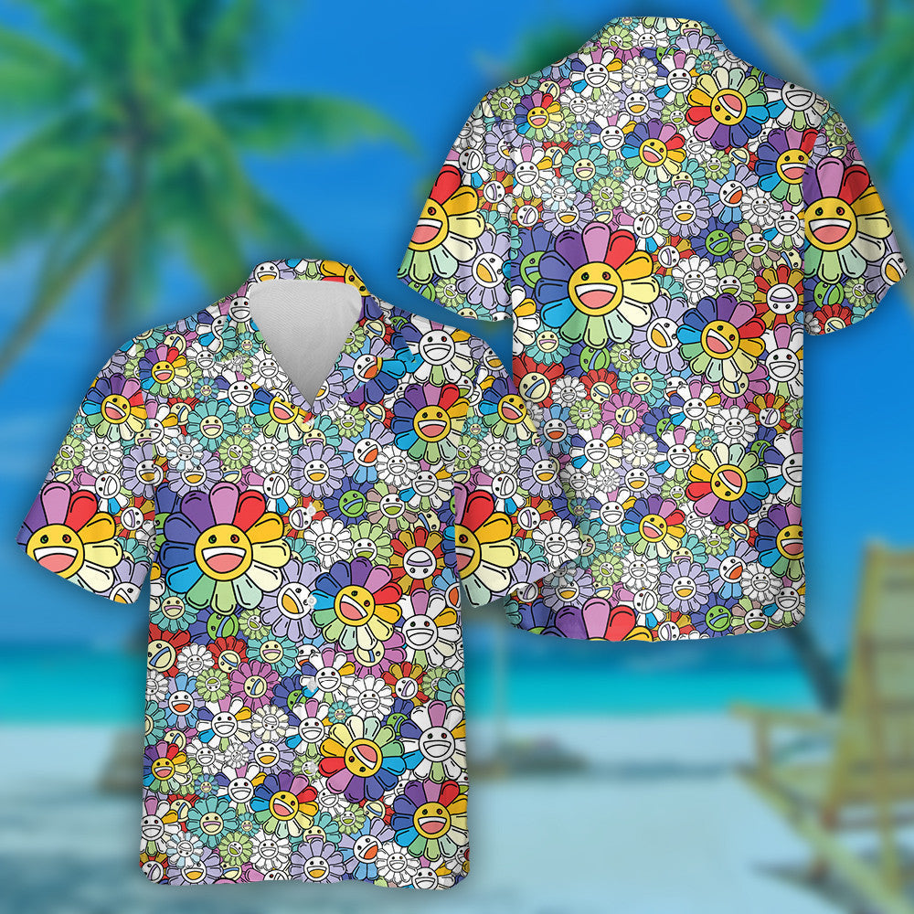 Aghaidh miongháire lus na gréine tuar ceatha gleoite Léine Haváís Stíl Doodle, Bronntanas Léine Haváís, Bronntanas Nollag