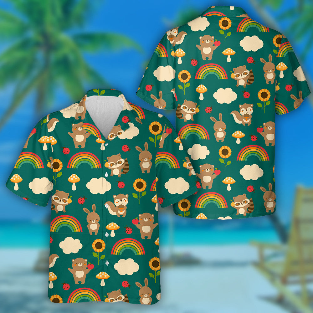 Ainmhithe Gleoite Coillearnacha Le Muisiriún Lusanna Gréine Rainbow Agus Scamaill Léine Haváís, Bronntanas Léine Haváís, Bronntanas Nollag