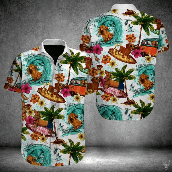 Dachshund On Beach Dia duit Léine Haváí an tSamhraidh, Bronntanas Léine Haváíais, Bronntanas Nollag