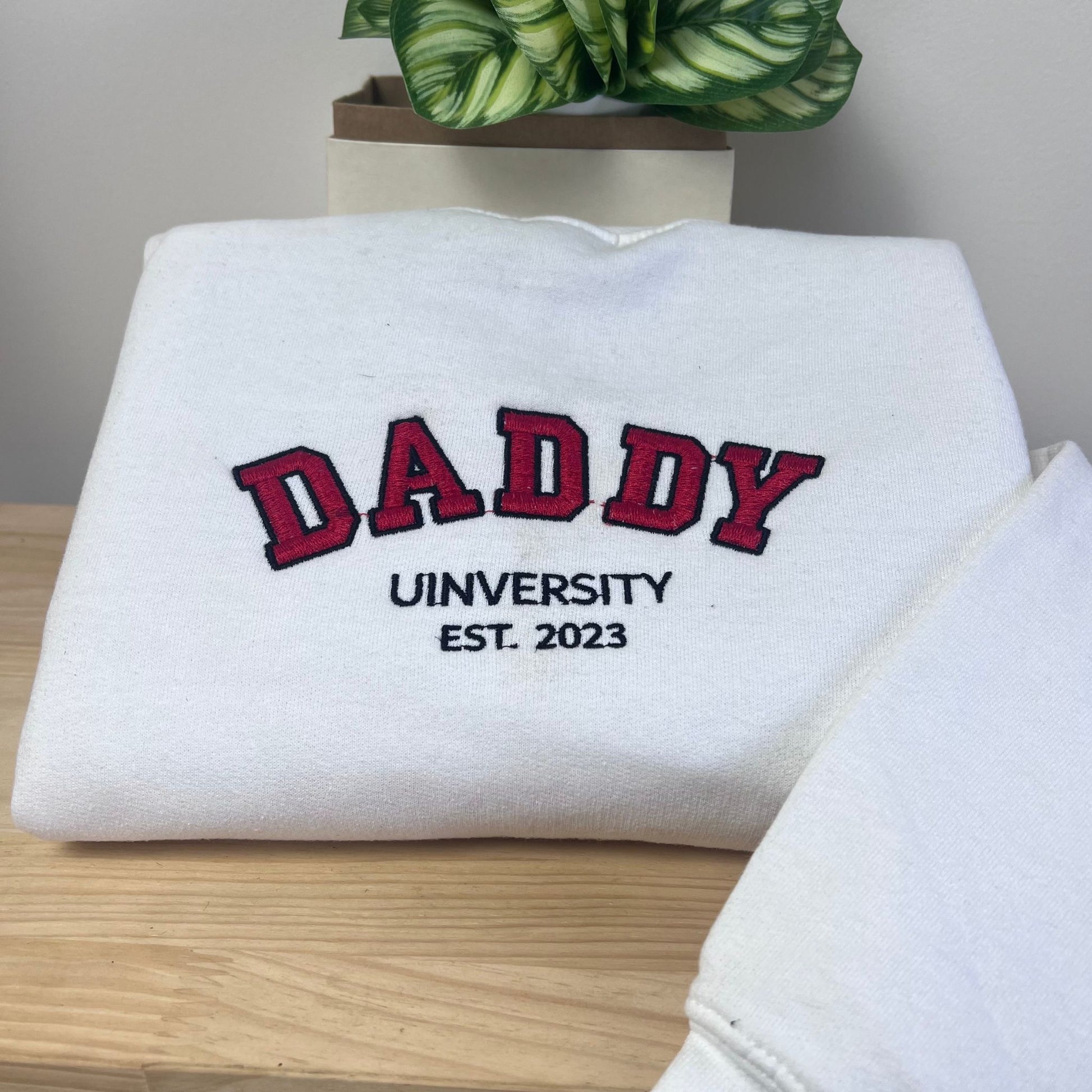 Daddy University Sweatshirt Hoodie, Embroidered Kids Names on Sleeve