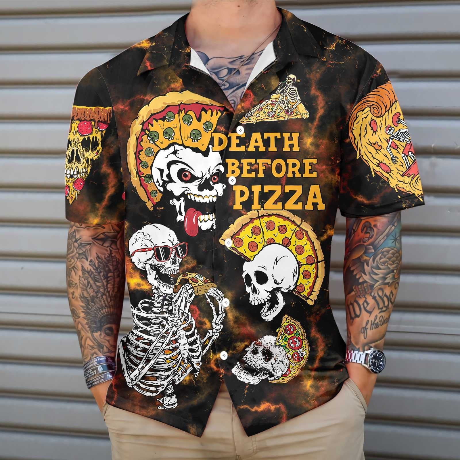 Bás Roimh Pizza Dearadh Rock Léine Haváís, Bronntanas Léine Haváí, Bronntanas Nollag
