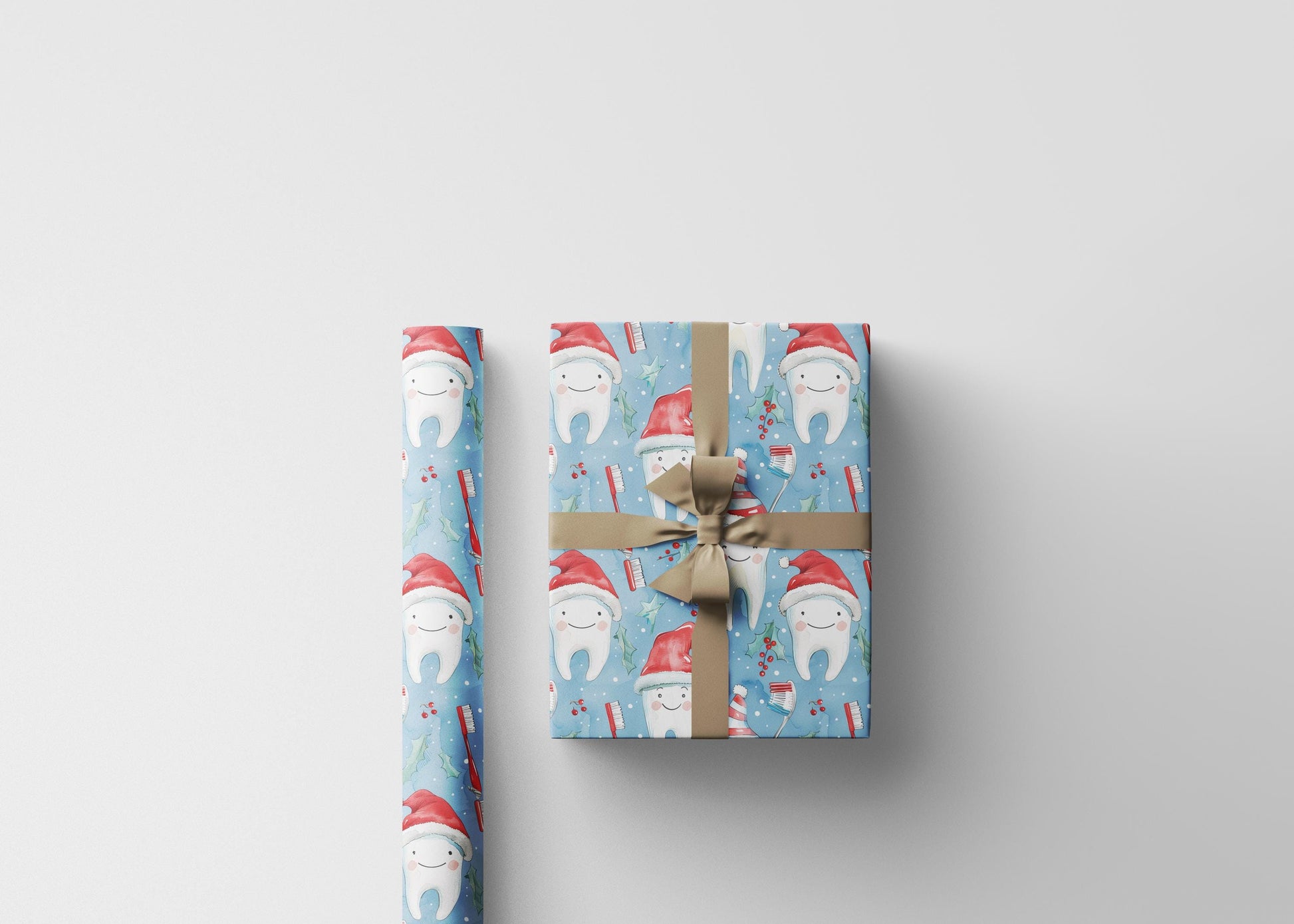 Dentist Appreciation Gift Wrap, Dental Pattern Paper, Unique Tooth Design Christmas Fun Gift Wrap for Dental Office Dentist and Hygienists