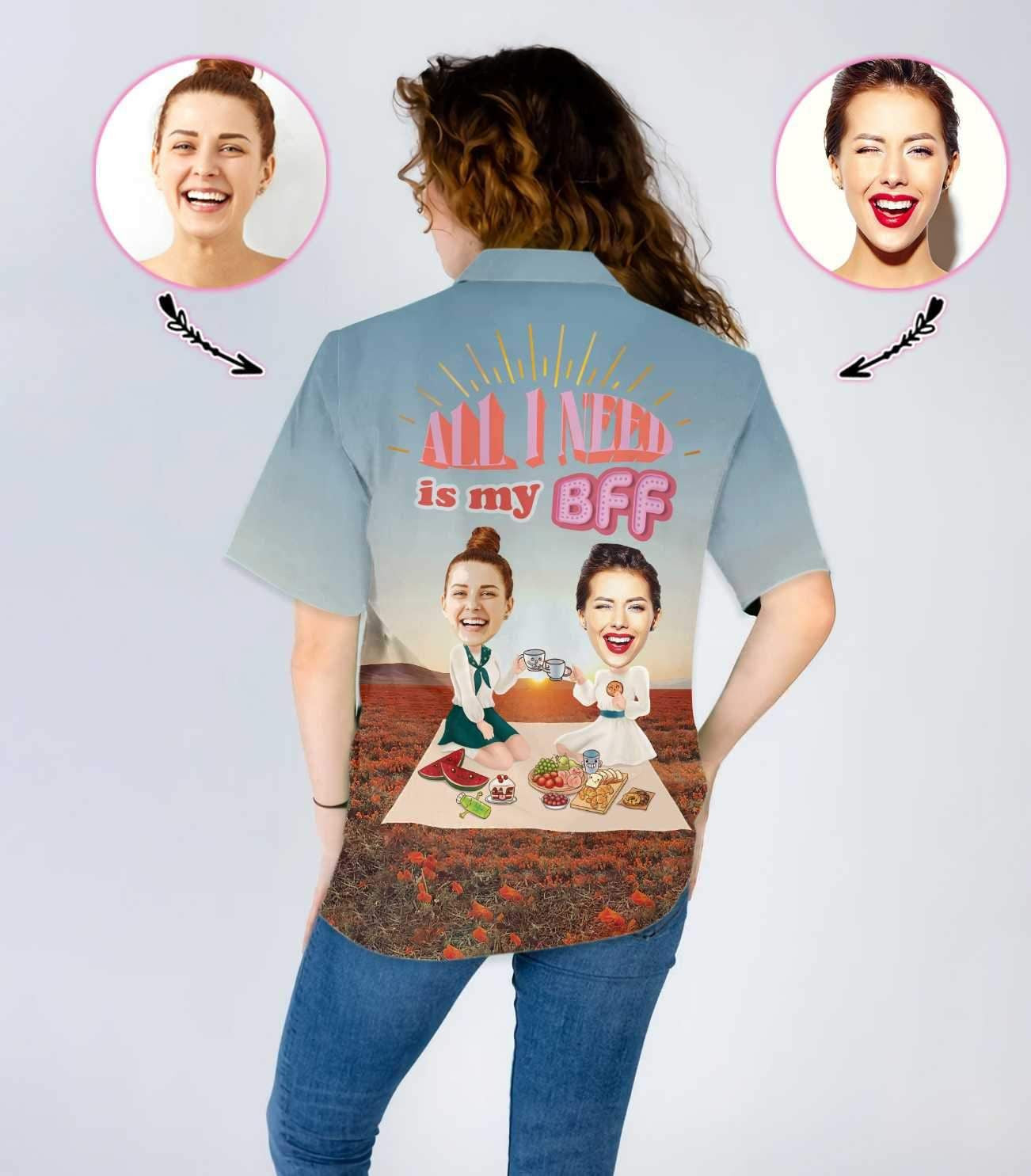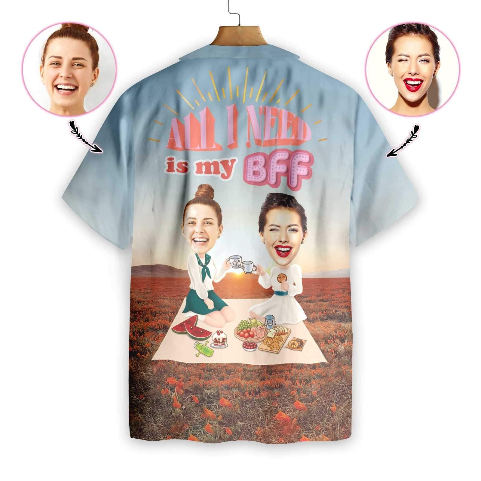 Difríocht Grá BFF Picnic Ainm Saincheaptha Agus Grianghraf Léine Haváís, Bronntanas Léine Haváíais, Bronntanas Nollag