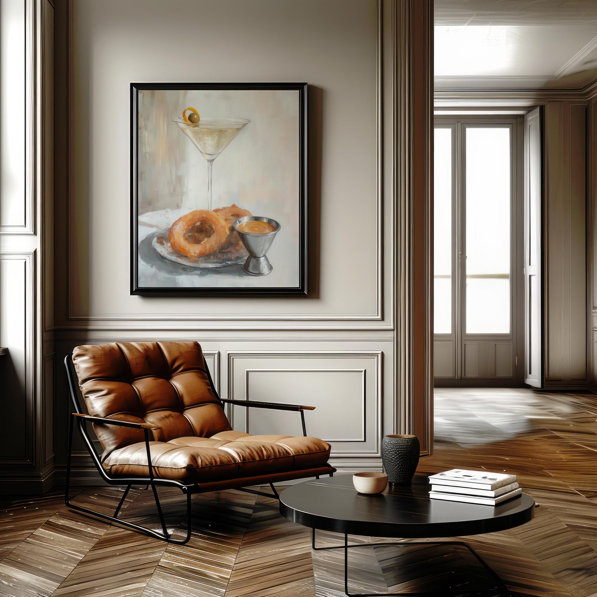 Dirty Martini with Onion Rings Art Print | Cute Quirky Whimsical | Cocktail Art Bar Cart Decor | Trendy Wall Art | Funny Food Art Gift