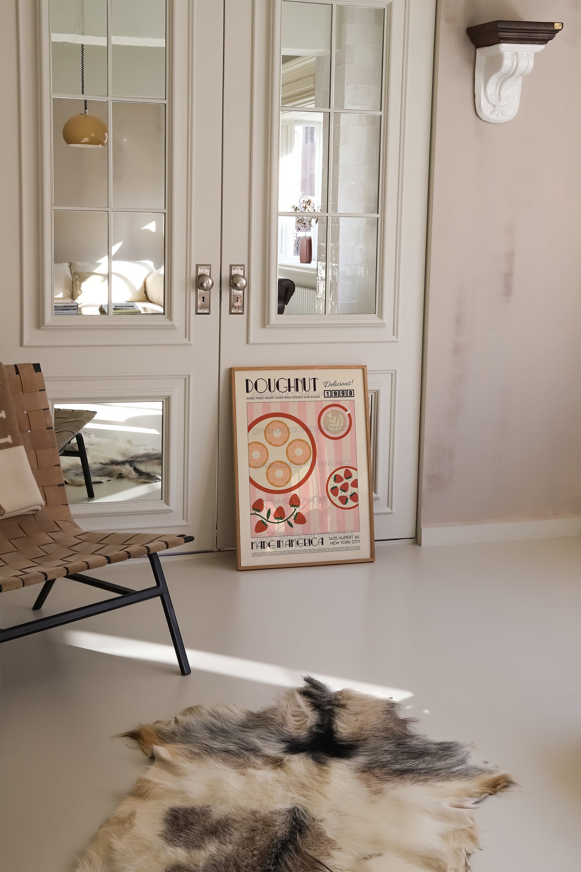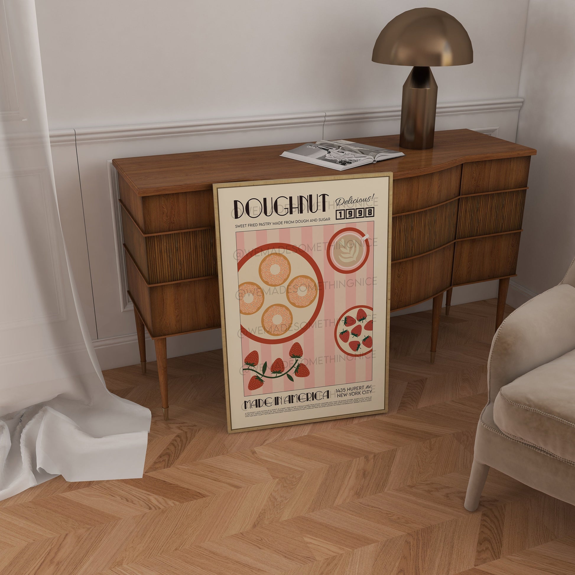 Doughnut Poster, Kitchen Art, Food Print, Kitchen Wall Art, Retro Poster, Pink Wall Art, Kitchen Poster, Exhibition Poster, Housewarming