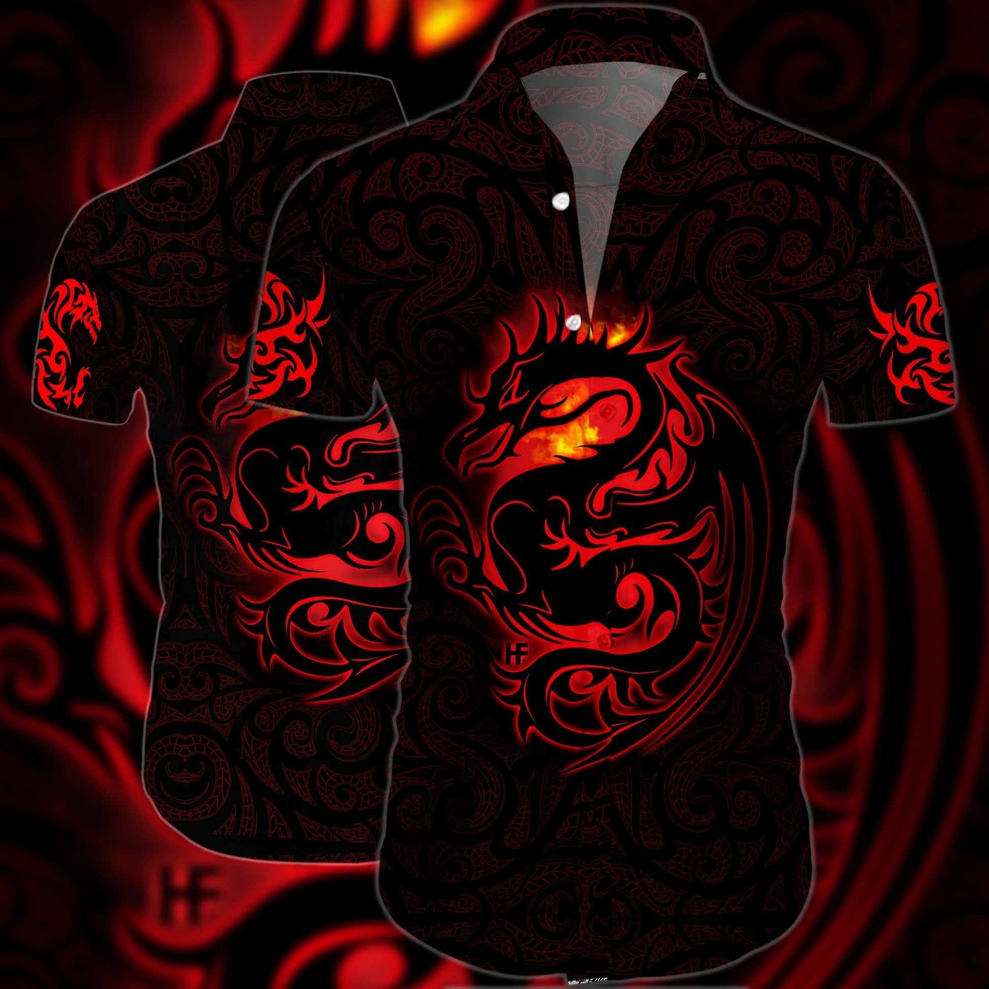 Ealaín Tattoo Dragon Treibhe I nDearadh Dorcha Léine Haváís, Bronntanas Léine Haváíais, Bronntanas Nollag