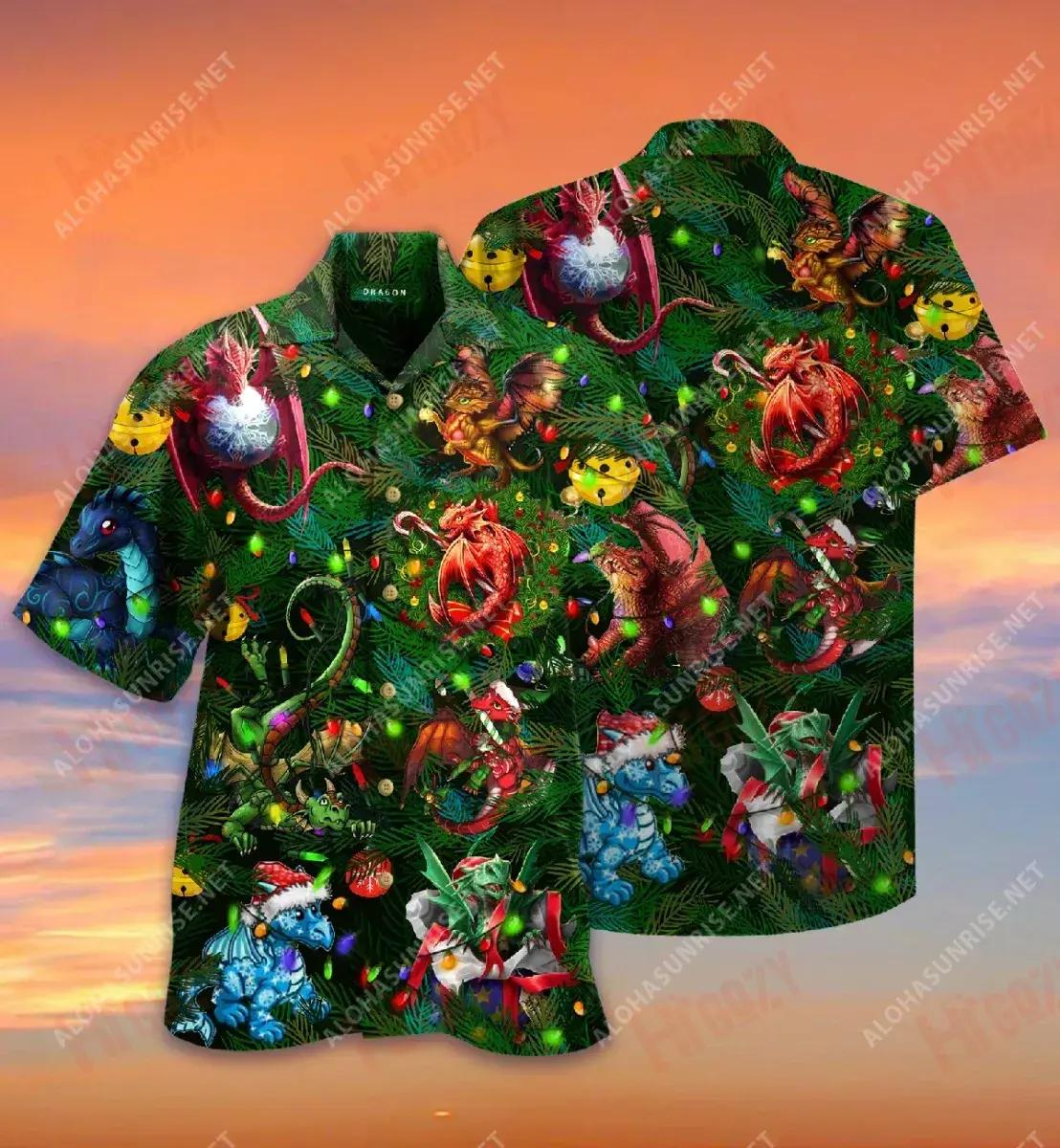 Is Ainmhithe Spioradálta iad Dragons Léine Gearr Haváís Caitheamh aimsire Léinte Tropical Léinte Seanré Haváíais Léinte Greannmhar Haváis, Bronntanas Léine Haváís, Bronntanas Nollag