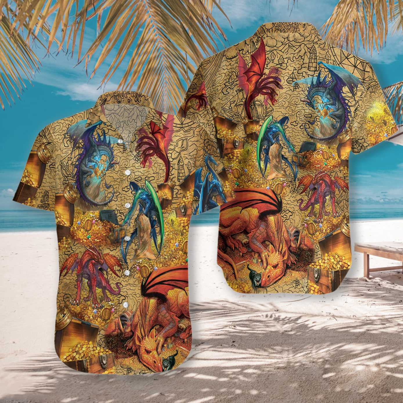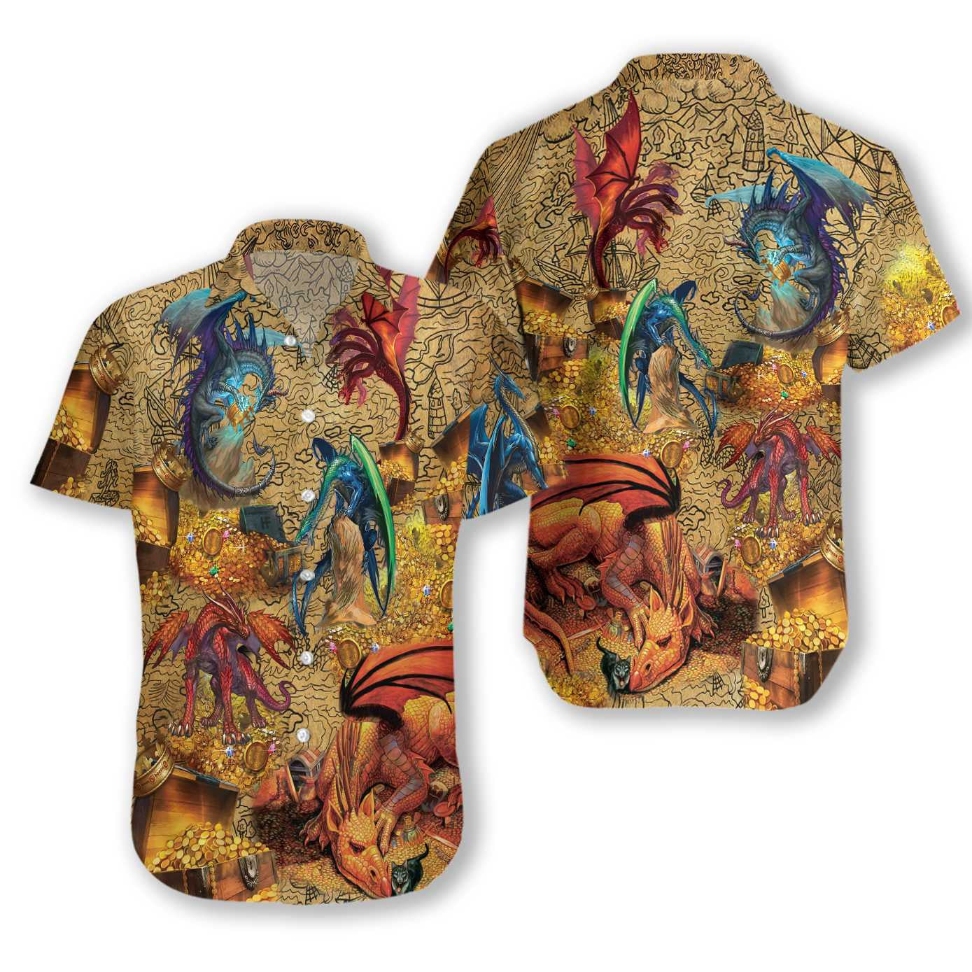 Dragons With Treasure Design Álainn Léine haváí, Bronntanas Léine Haváís, Bronntanas Nollag