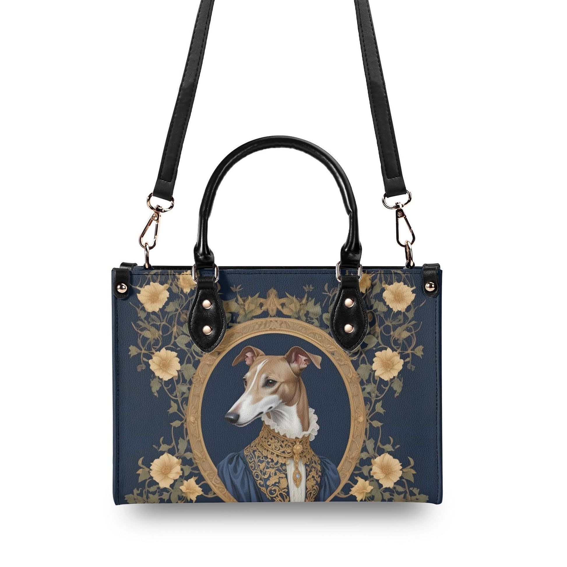 Elegant Greyhound Crossbody Bag in Golden Elizabethan Attire - Art Nouveau Vegan Leather Purse