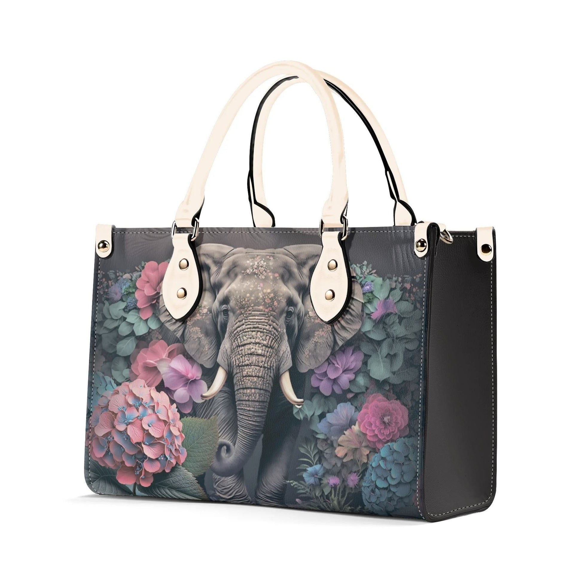 Elephants Garden Gala Handbag. Colorful Handbag, Waterproof PU Leather Tote, Top Handle Vegan Leather, Crossbody, Shoulder bag.