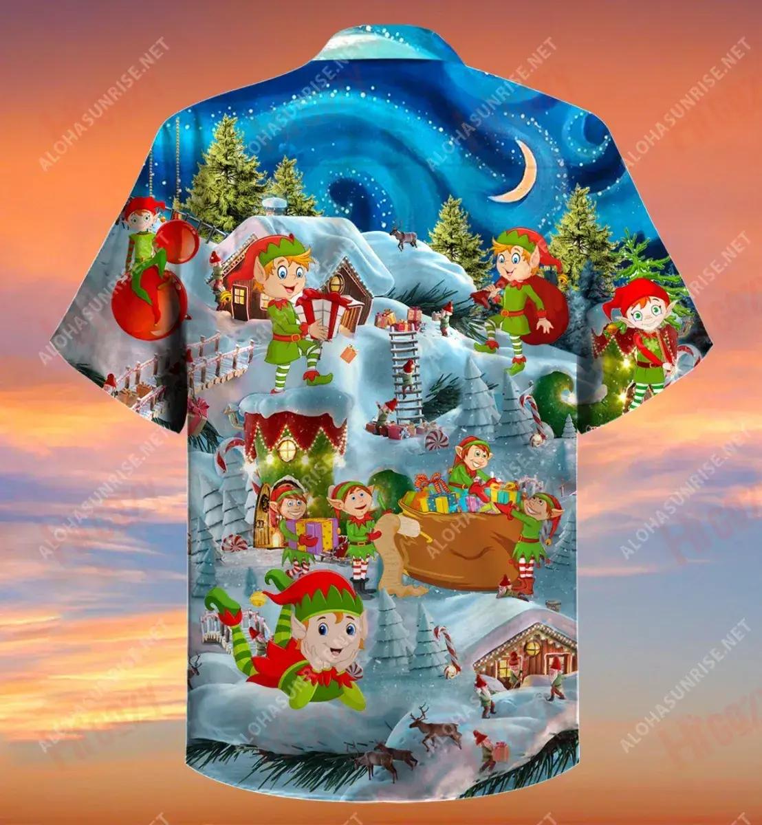 Elves Ar an gCrann Nollag Léine Gearr Haváís Laethanta Saoire Aloha Shirt Léinte Haváís is Fearr Léinte Greannmhar Haváís, Léine Haváís, Bronntanas Nollag