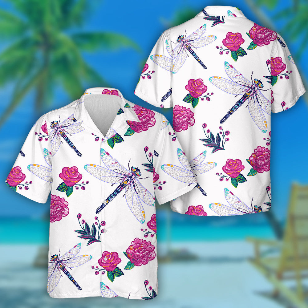 Bróidnéireacht Peony Bláth agus Léine Álainn Haváís Dragonfly, Bronntanas Léine Haváí, Bronntanas Nollag