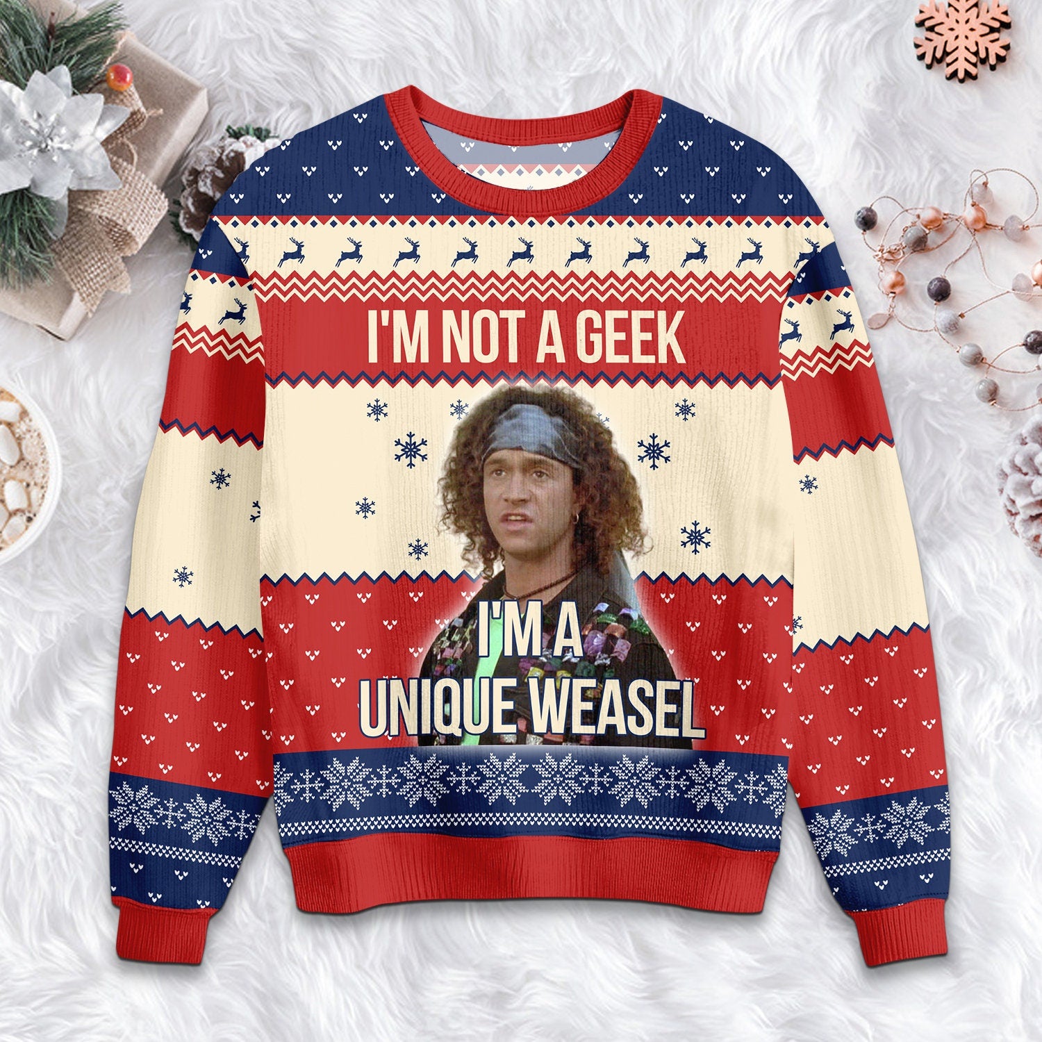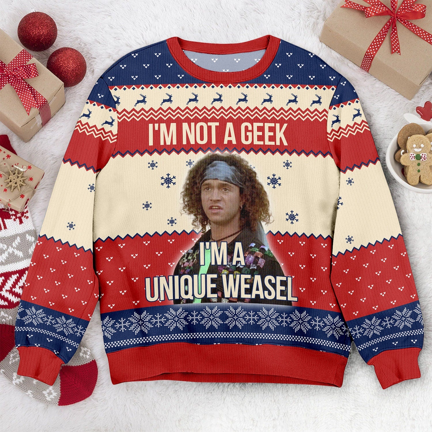Encino Man Ugly Christmas Sweater: Retro 'I'm Not a Geek' Movie Sweatshirt