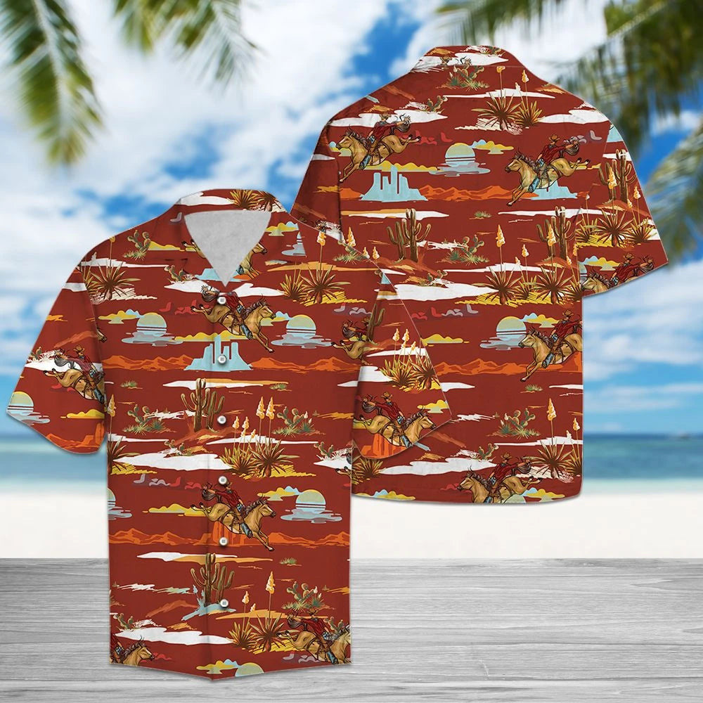 Bain sult as Laethanta Saoire an tSamhraidh Cactus Cowboy Desert Pattern Léine Haváís, Bronntanas Léine Haváís, Bronntanas Nollag