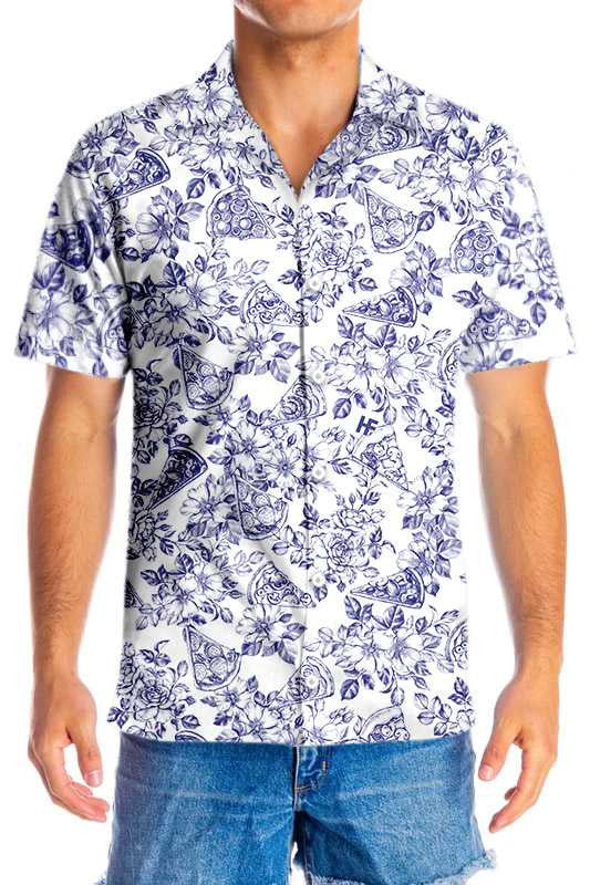 Dearadh Pizza Floral Gorm den Scoth Léine Haváís, Bronntanas Léine Haváí, Bronntanas Nollag
