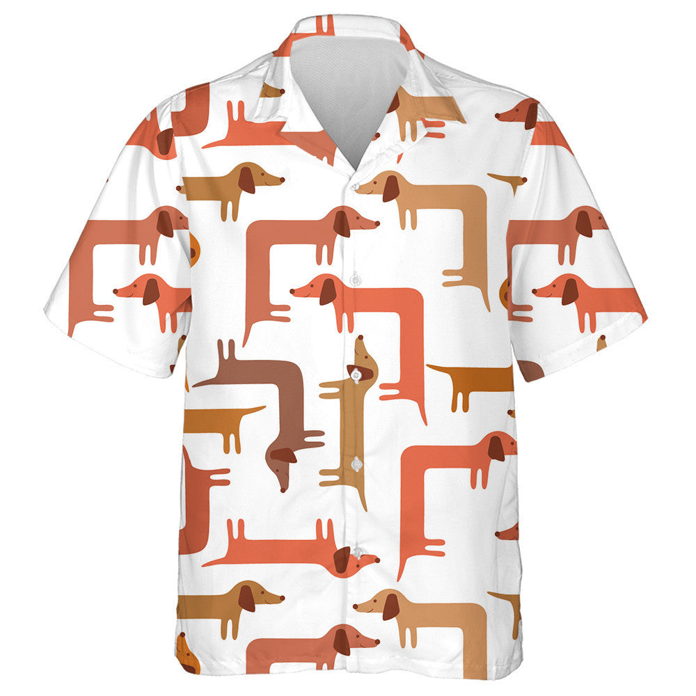 Dachshund Fada Coimhthíocha ar Chúlra Bán Léine Haváís, Bronntanas Léine Haváí, Bronntanas Nollag