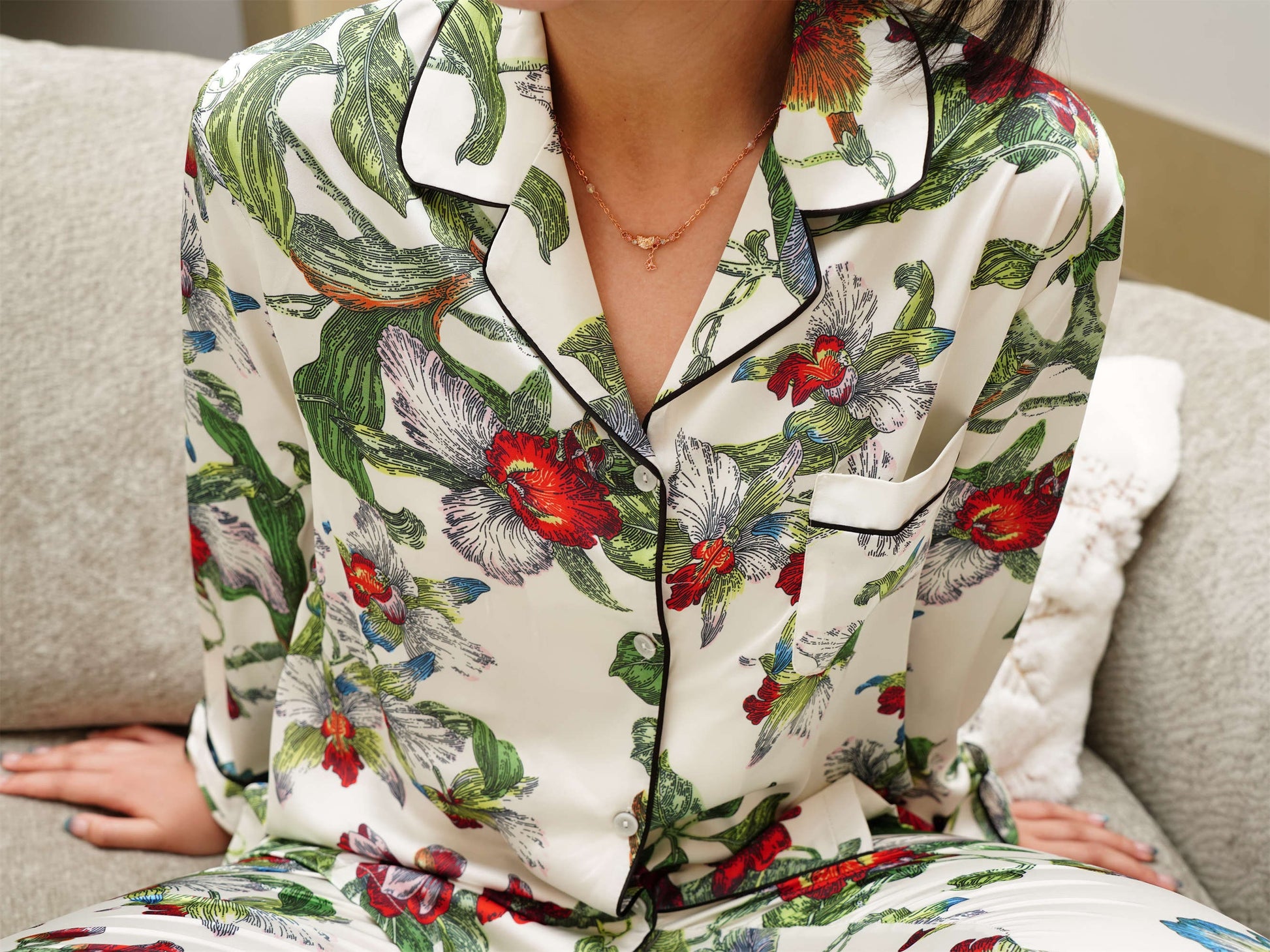 Exotic Rainbow Flower Print Pyjama Set ,Long Sleeves ,Bride and Bridesmaid Pajama , Birthday Gifts For Her?Could Be Wear Outside,