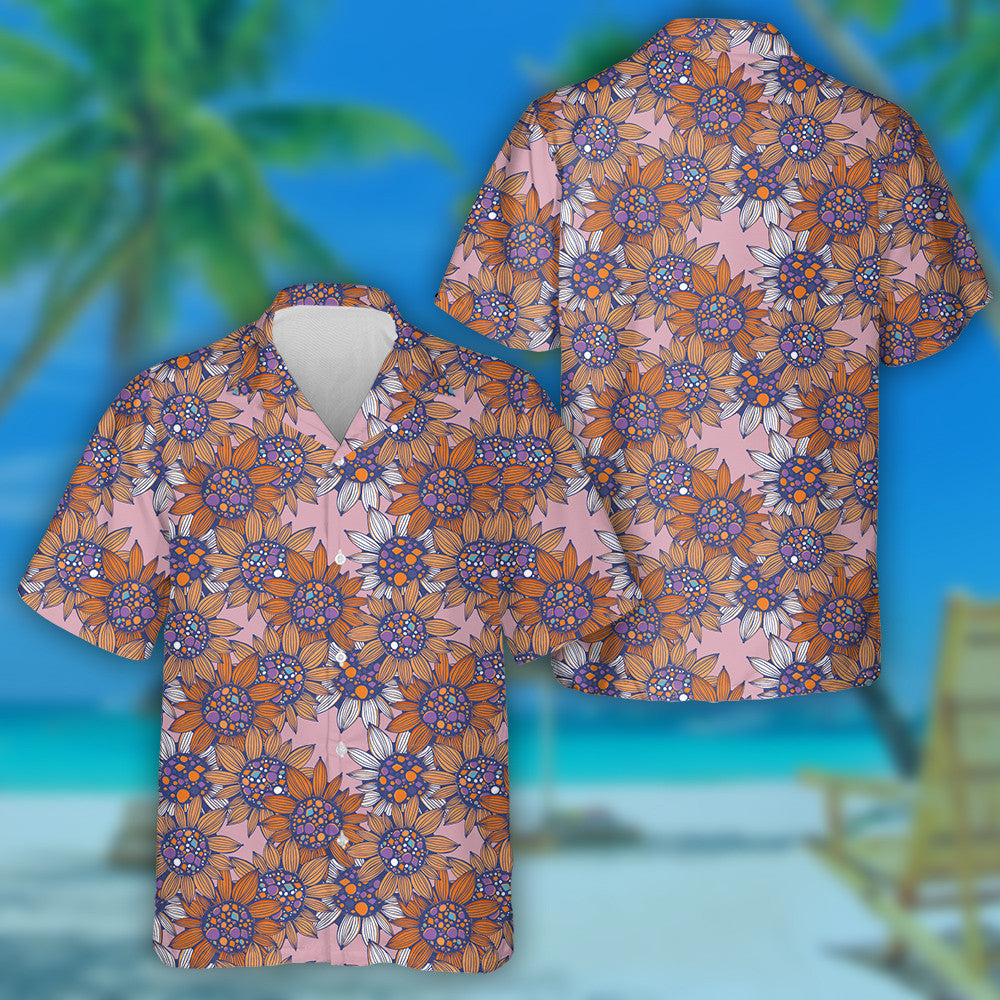 Fantasy Vintage Sunflowers Líníocht Le Léine Saorláimhe Haváís, Bronntanas Léine Haváí, Bronntanas Nollag