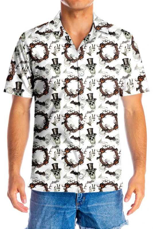 Oíche Shamhna Fhéile Le Cloigeann Duine Uasal Léine ildaite Haváís, Bronntanas Léine Haváí, Bronntanas Nollag