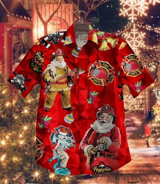 Comhraiceoir Dóiteáin Santa Ar Chúlra na Nollag Dearaidh Seanré Stíl Léine Haváís, Bronntanas Léine Haváíais, Bronntanas Nollag