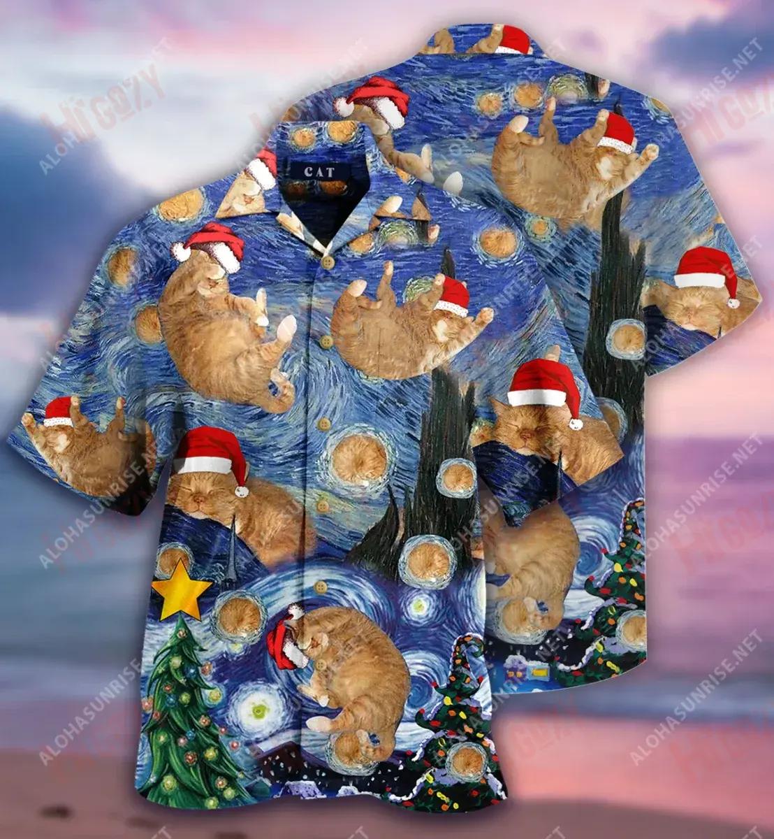 Cúig Nóiméad Eile Cat Starry Nollag Gearr Léine Haváís Muinchille Samhraidh Gearr Léinte Crazy Léinte haváíais do Mhná, Bronntanas Léine Haváís, Bronntanas Nollag