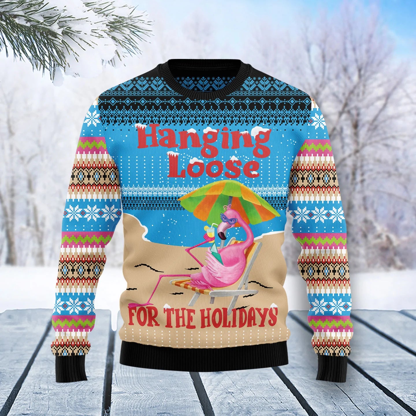 Flamingo Crochta Loose unisex ban & fir, lánúin ag meaitseáil, cairde, teaghlaigh greannmhar bronntanais geansaí gránna saoire na Nollag , geansaí gránna Nollag