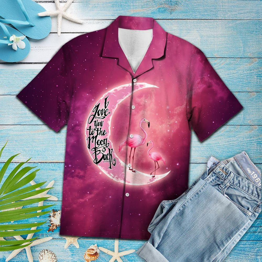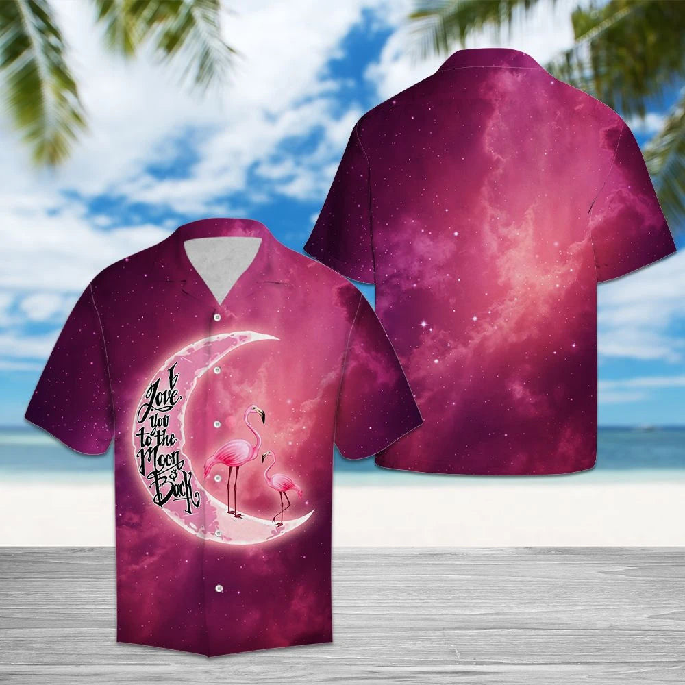 Flamingo ina sheasamh ar an gCorrán Gealach Léine Bándearg Stardust Sky Haváís, Bronntanas Léine Haváís, Bronntanas Nollag