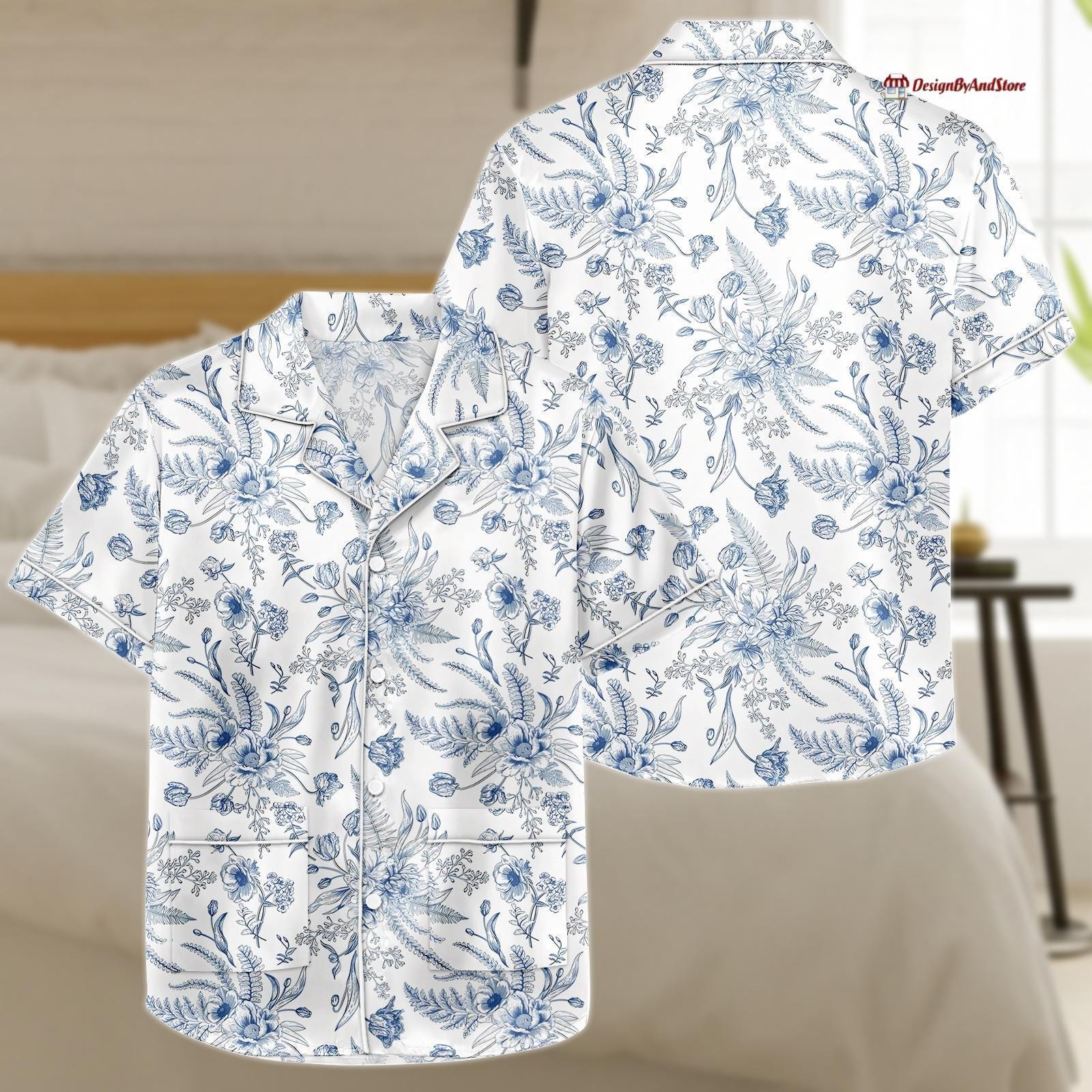 Floral Pattern Pajama Set, Summer Satin PJs Set, Sleepwear PJs Shirt and Shorts, Lounge Set for Women, Gift for Her