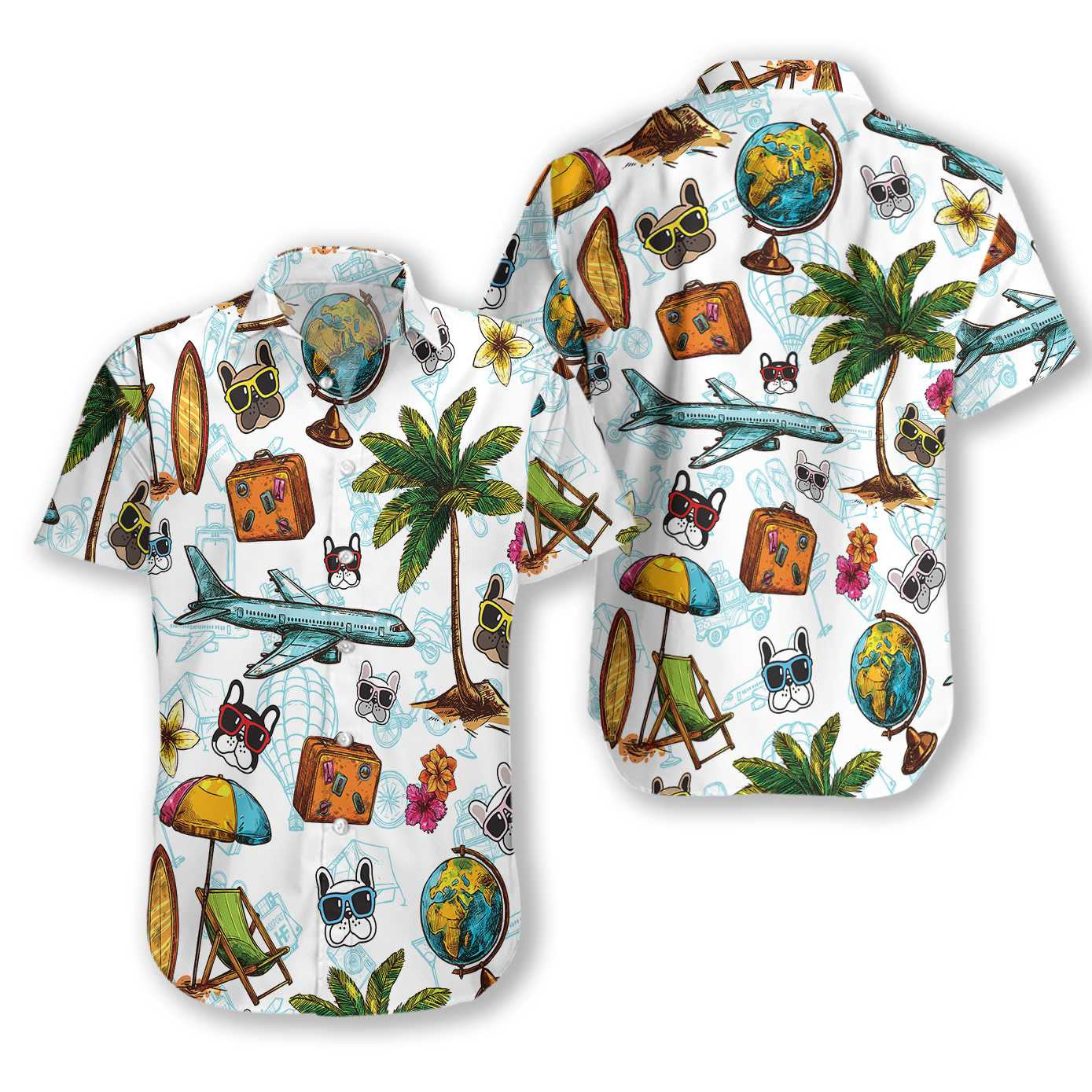 Sunglasses Bulldog na Fraince Aloha Taisteal Timpeall an Domhain Léine Haváís, Bronntanas Léine Haváís, Bronntanas Nollag