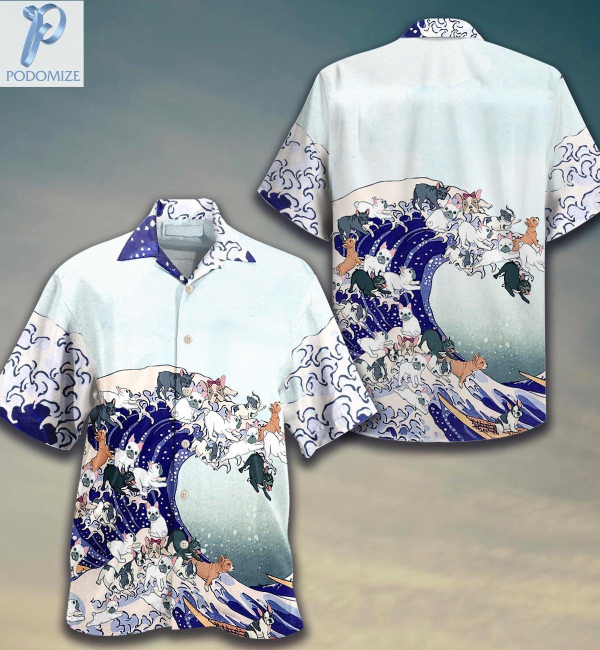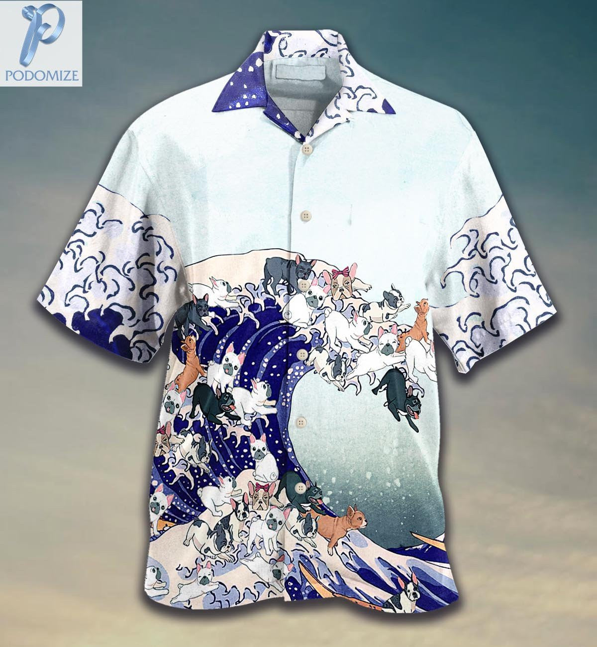 Bulldog na Fraince An Tonn Mhór As Patrún Madraí Léine Haváís, Bronntanas Léine Haváíais, Bronntanas Nollag