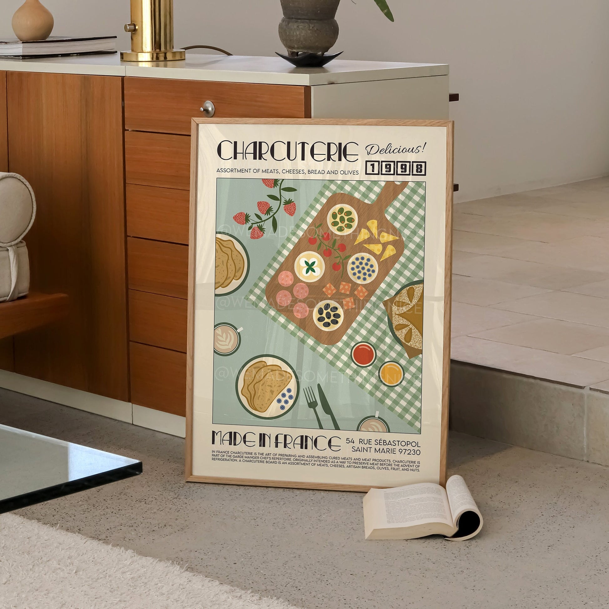 French Charcuterie Board Poster, Kitchen Poster, Kitchen Print, Food Print, Modern Kitchen Decor, Retro Poster, Pop Art, Kitchen Art